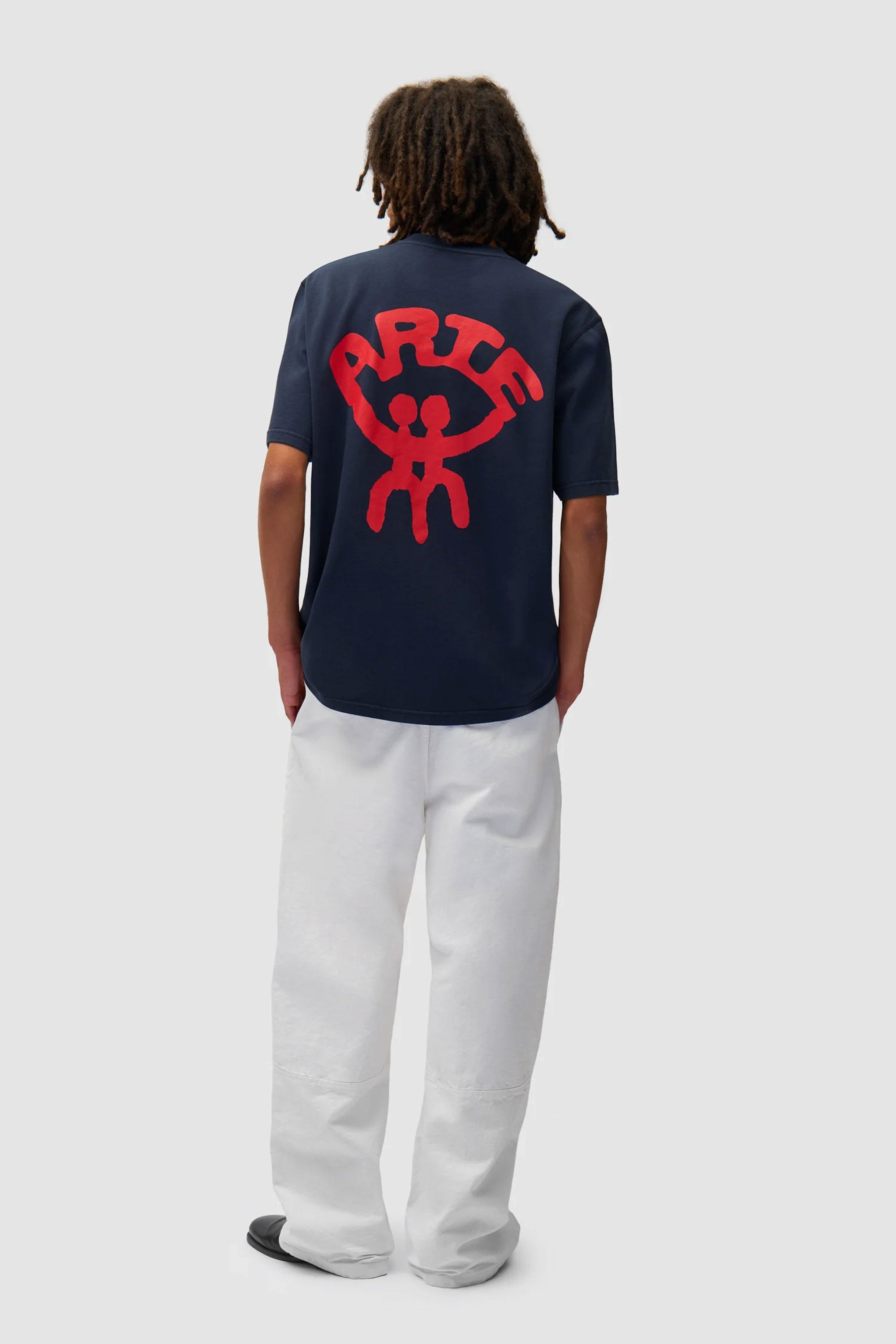 The T-shirt features an artwork screen-printed in red across the back that channels the theme of the collection. Made from premium heavyweight cotton, the navy T-shirt is soft to the touch with a slightly higher neckline and a relaxed fit.
