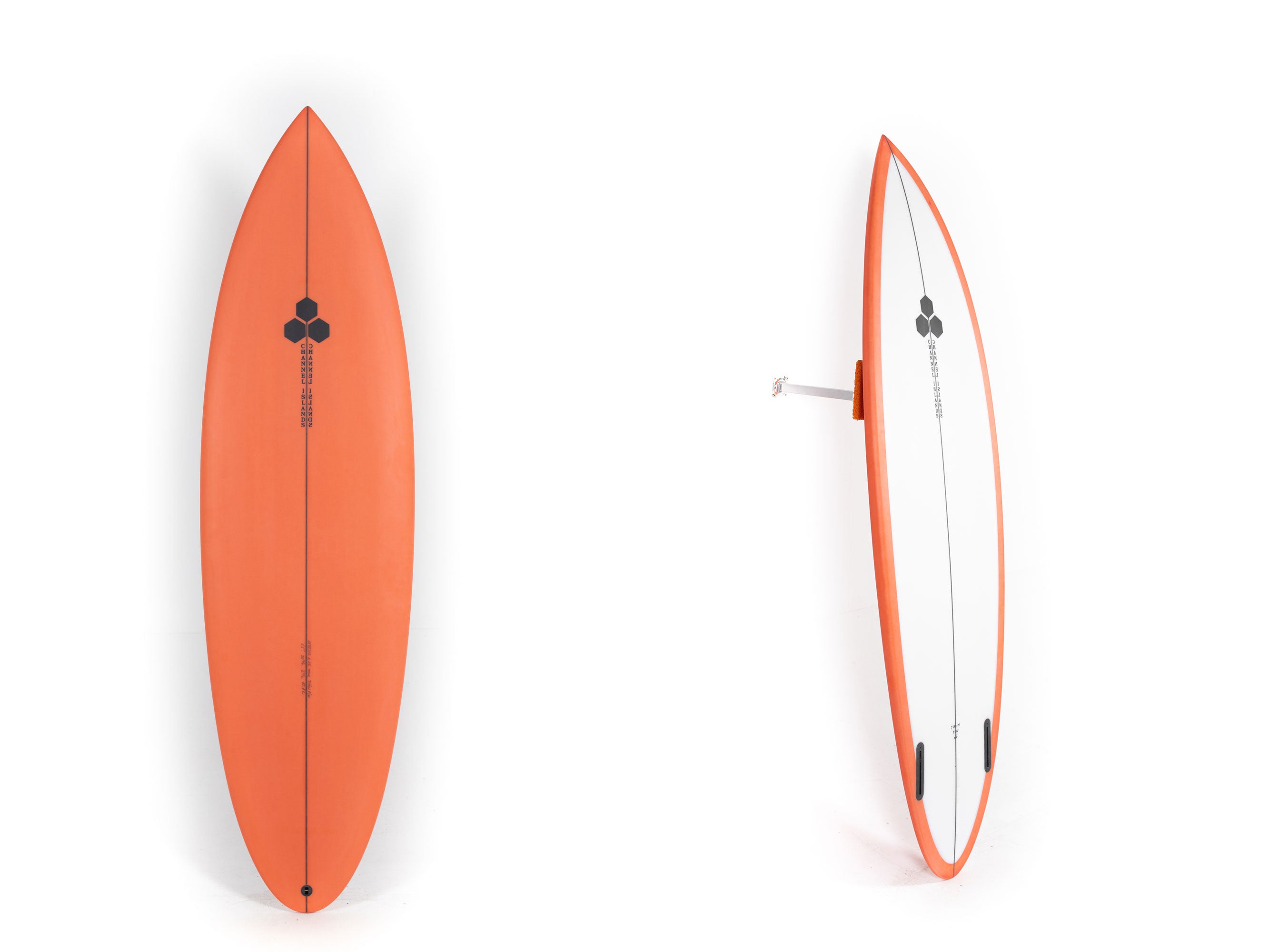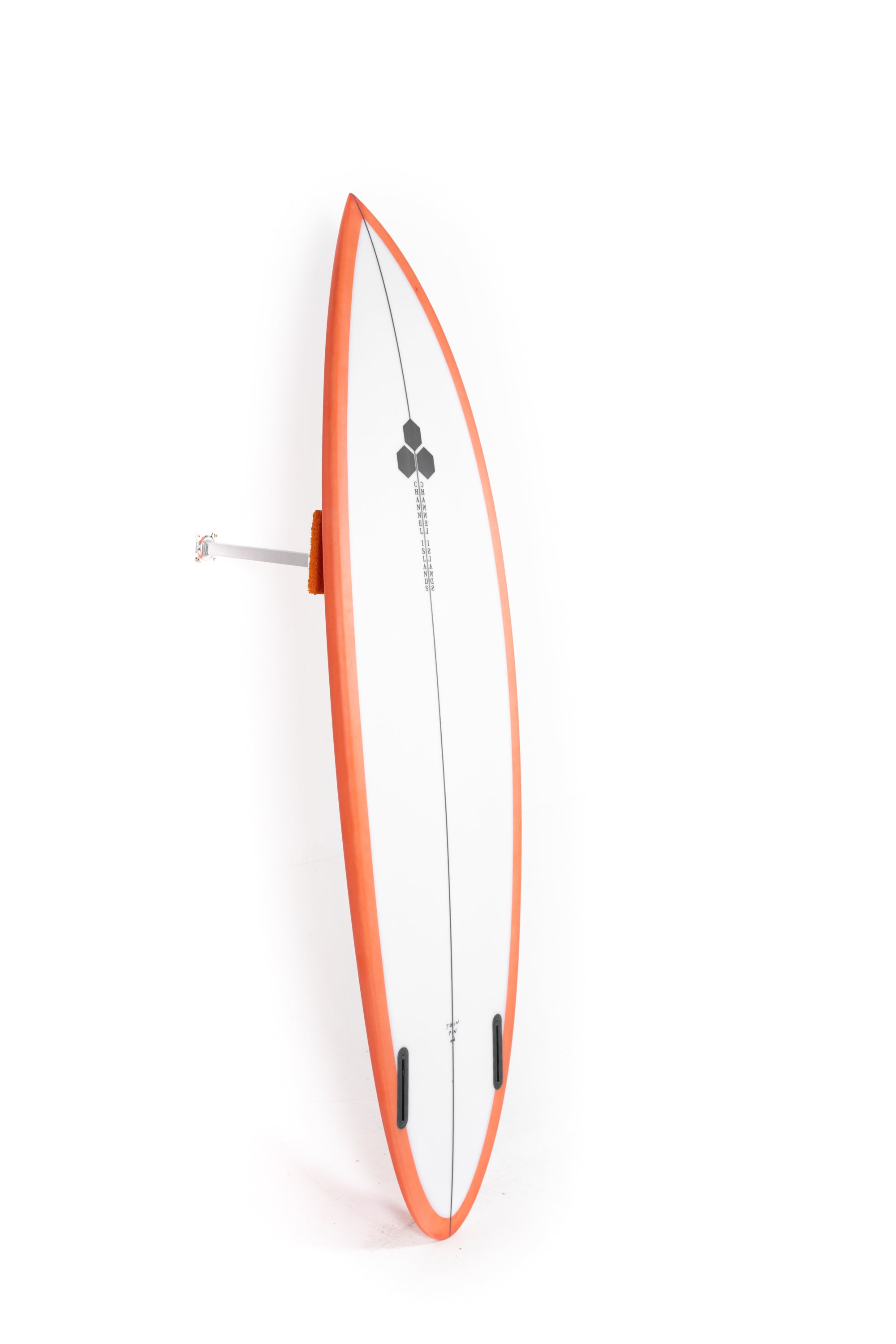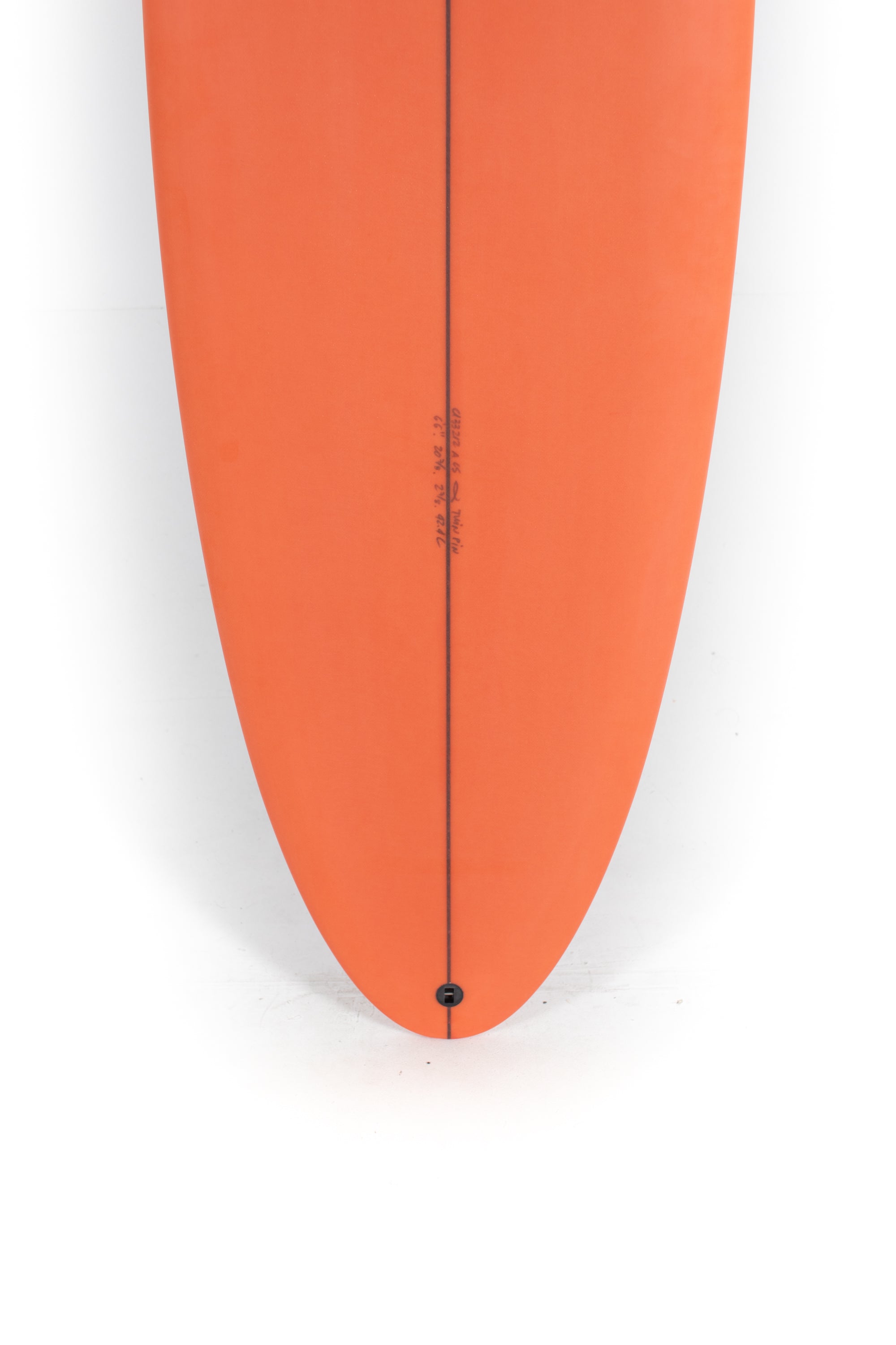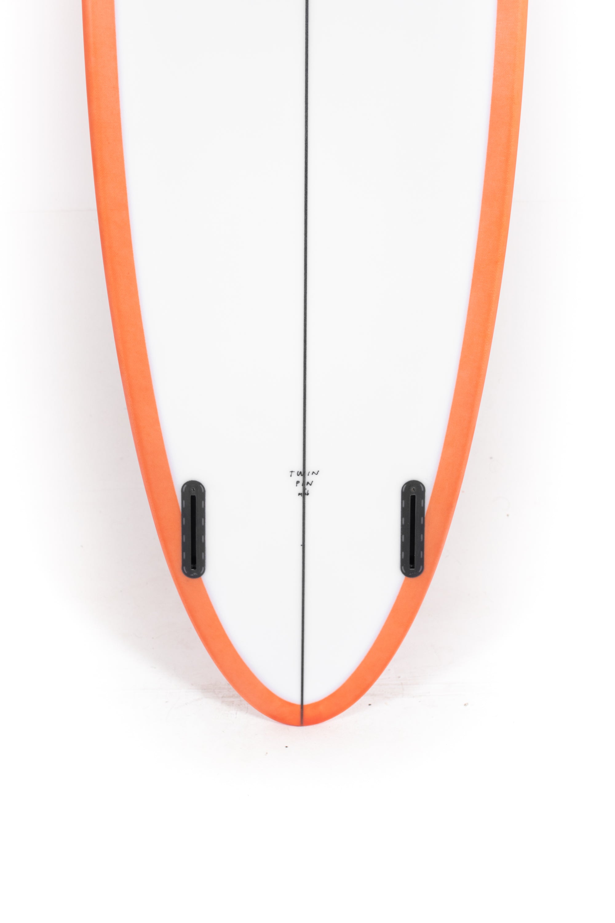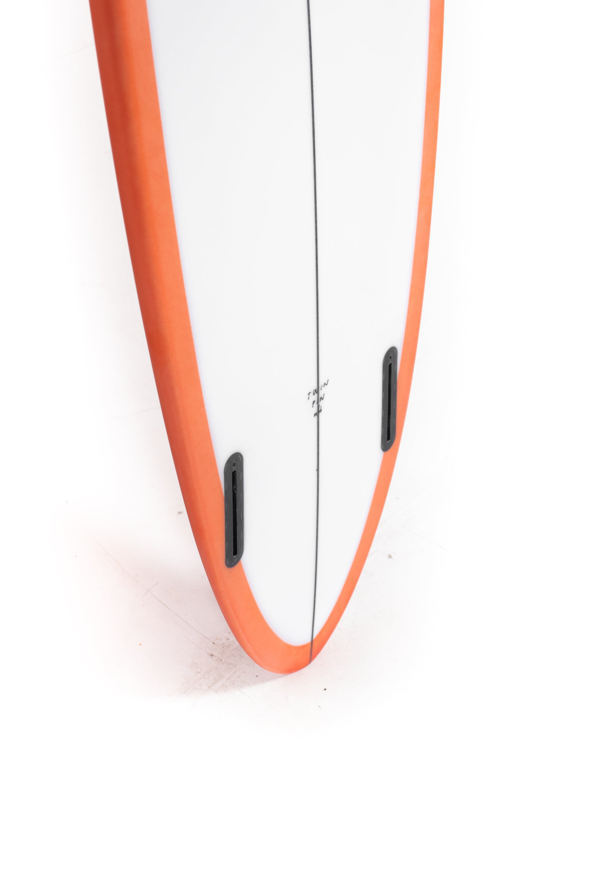 Most people ride the Twin Pin at least ⅛” thicker than their shortboard since the rails are low. Britt designed a hand foiled signature twin fin set to fit between a keel and upright fin to best perform with this CI Twin Pin providing the right balance of drive, hold and maneuverability, and flow.
