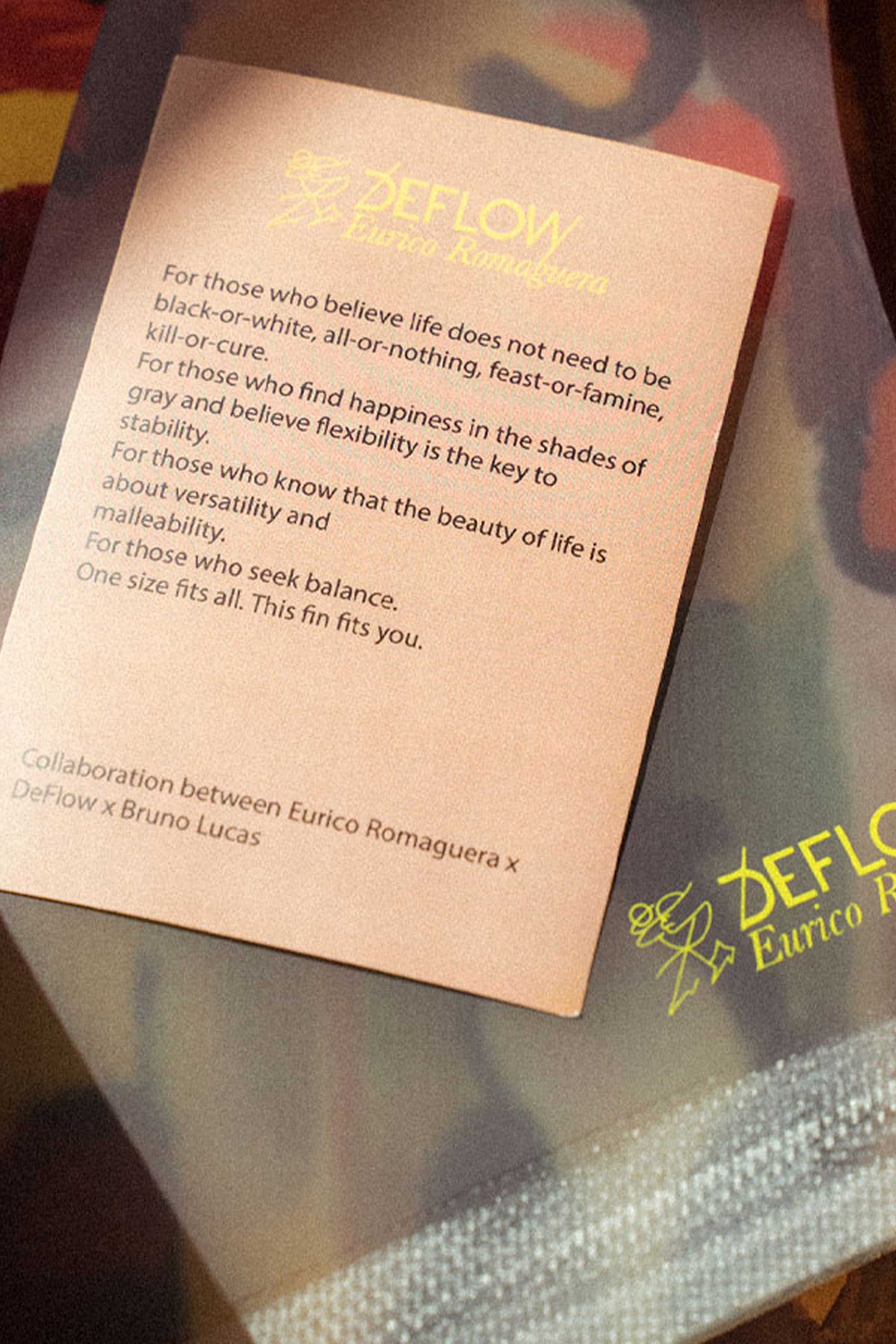 For those who know that the beauty of life is about versatility and malleability. For those who seek balance. One size fits all. This fin fits you. Collaboration between Eurico Romaguera x DeFlow x Bruno Lucas