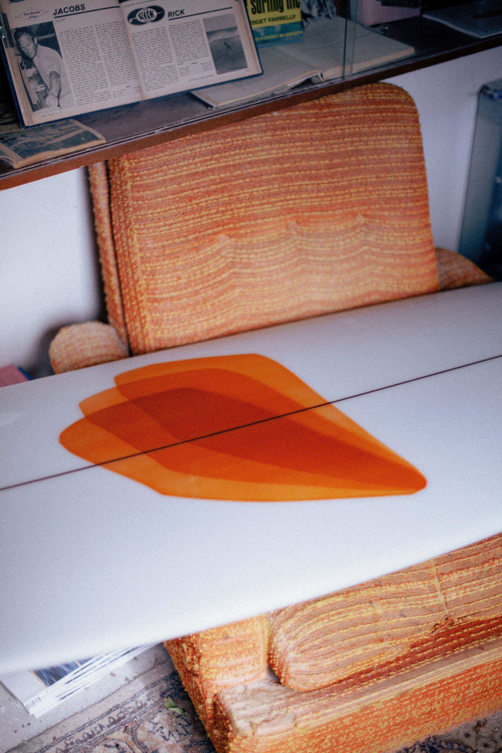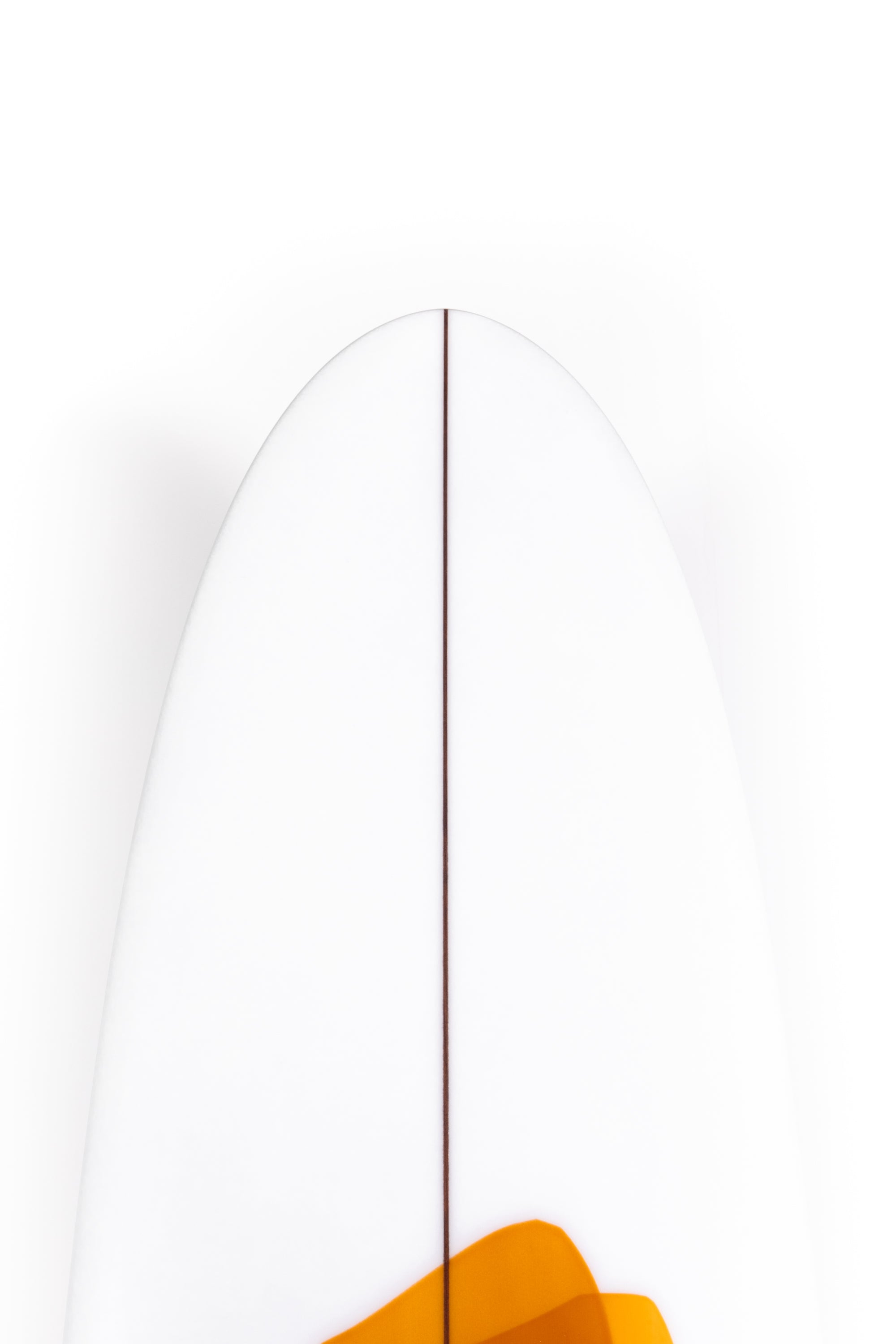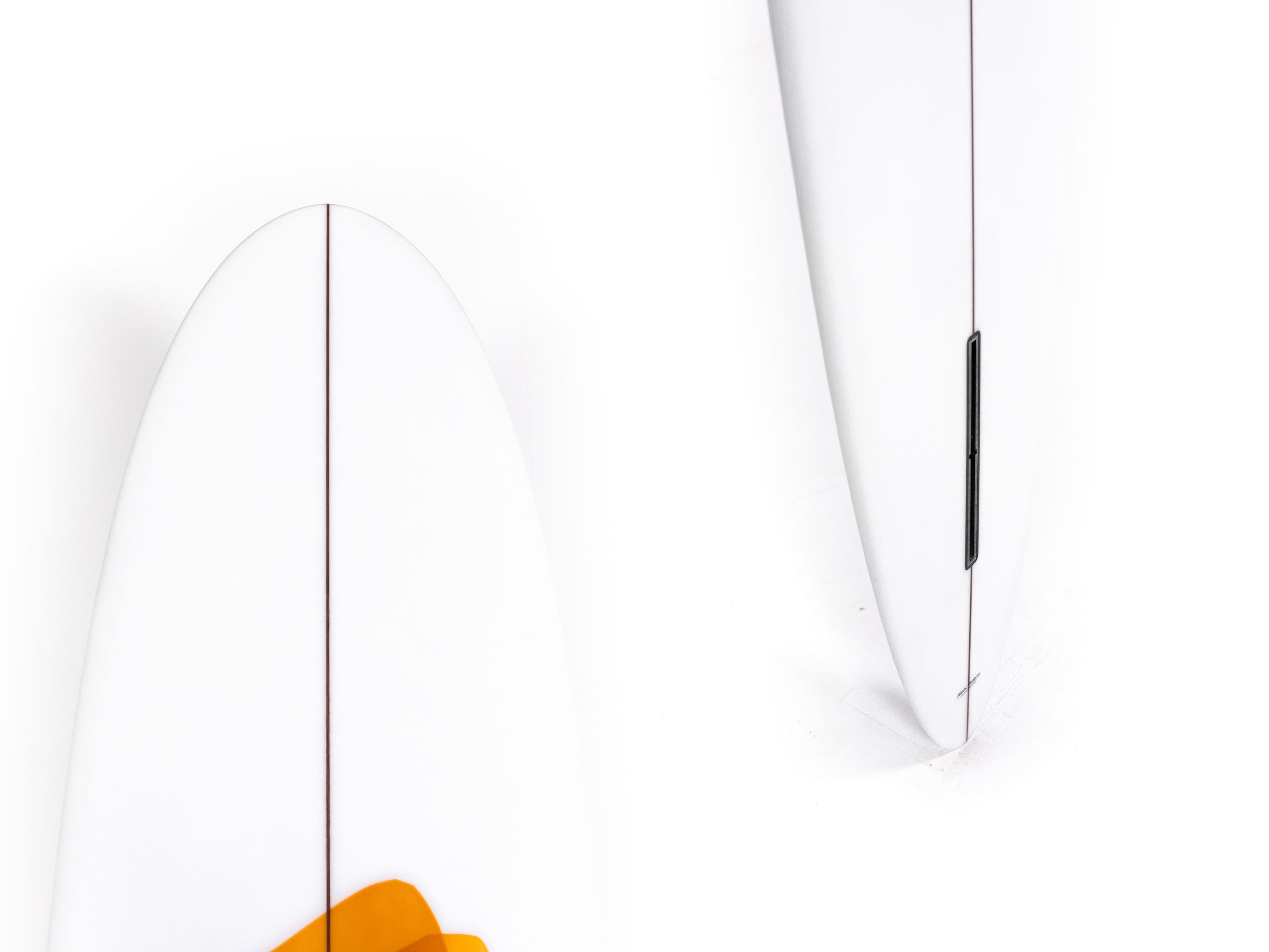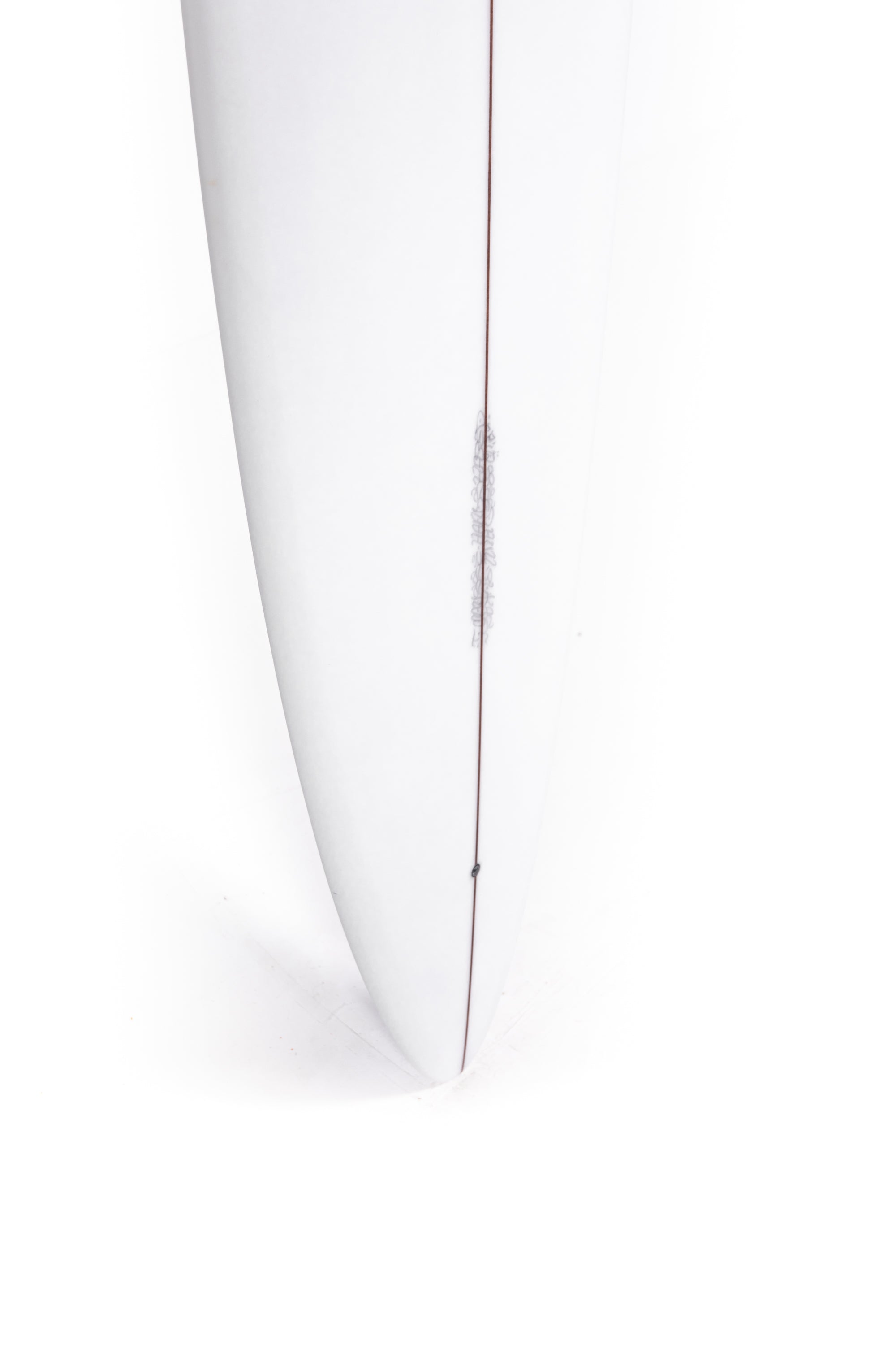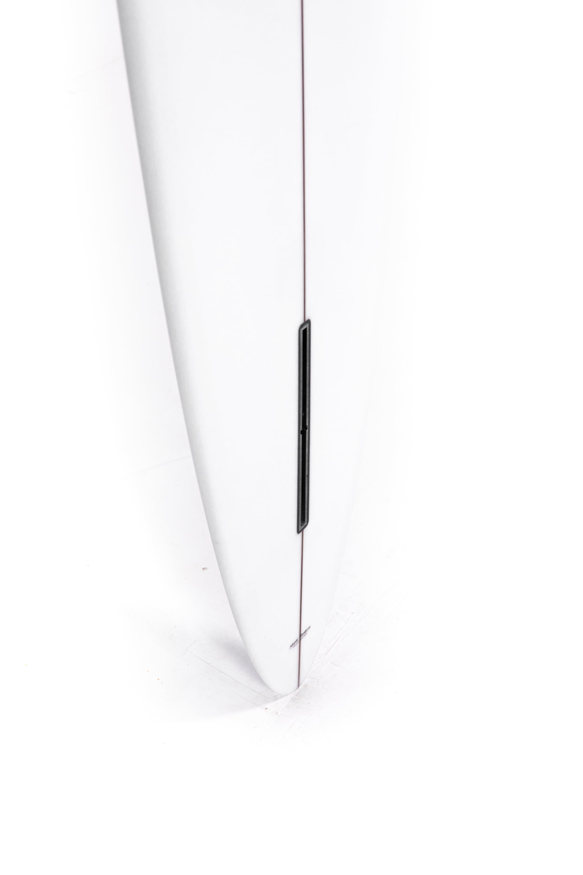 Throughout the board it has a full belly vee over the entire front two-thirds of the board, transitioning to a flat bottom in the rear third and behind the fin... this comes combined with soft rails, a super straight tail rocker and a more pronounced nose rocker.