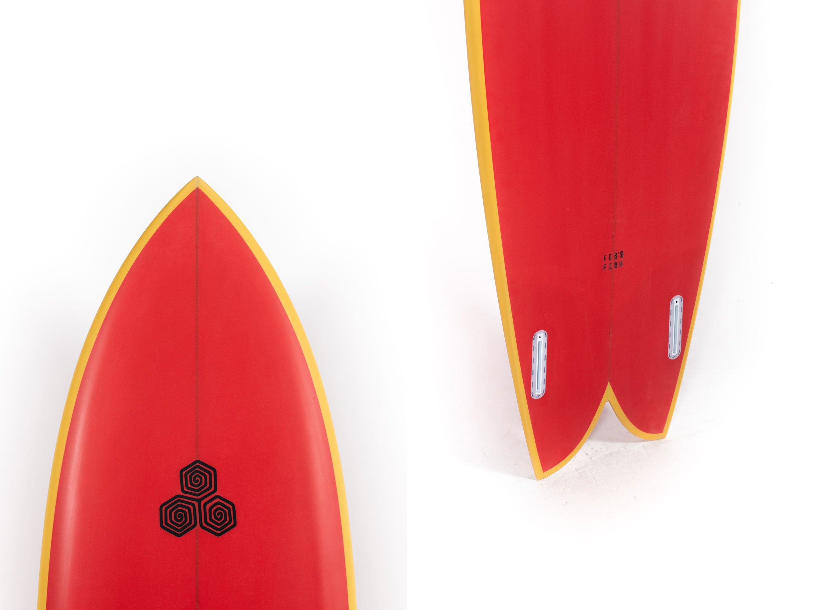 The Feb's Fish is the latest result of Michael February's never-ending curiosity for exploring new lines through designs shaped by Britt Merrick. Sometimes Mikey's requests are for original concepts, while other are his new take on a classic design. The latter was the case when he asked Britt for a traditional fish outline with a contemporary engine (modern bottom contours, rocker, etc.) and finely foiled rails so it could be ridden at the highest performance levels possible.