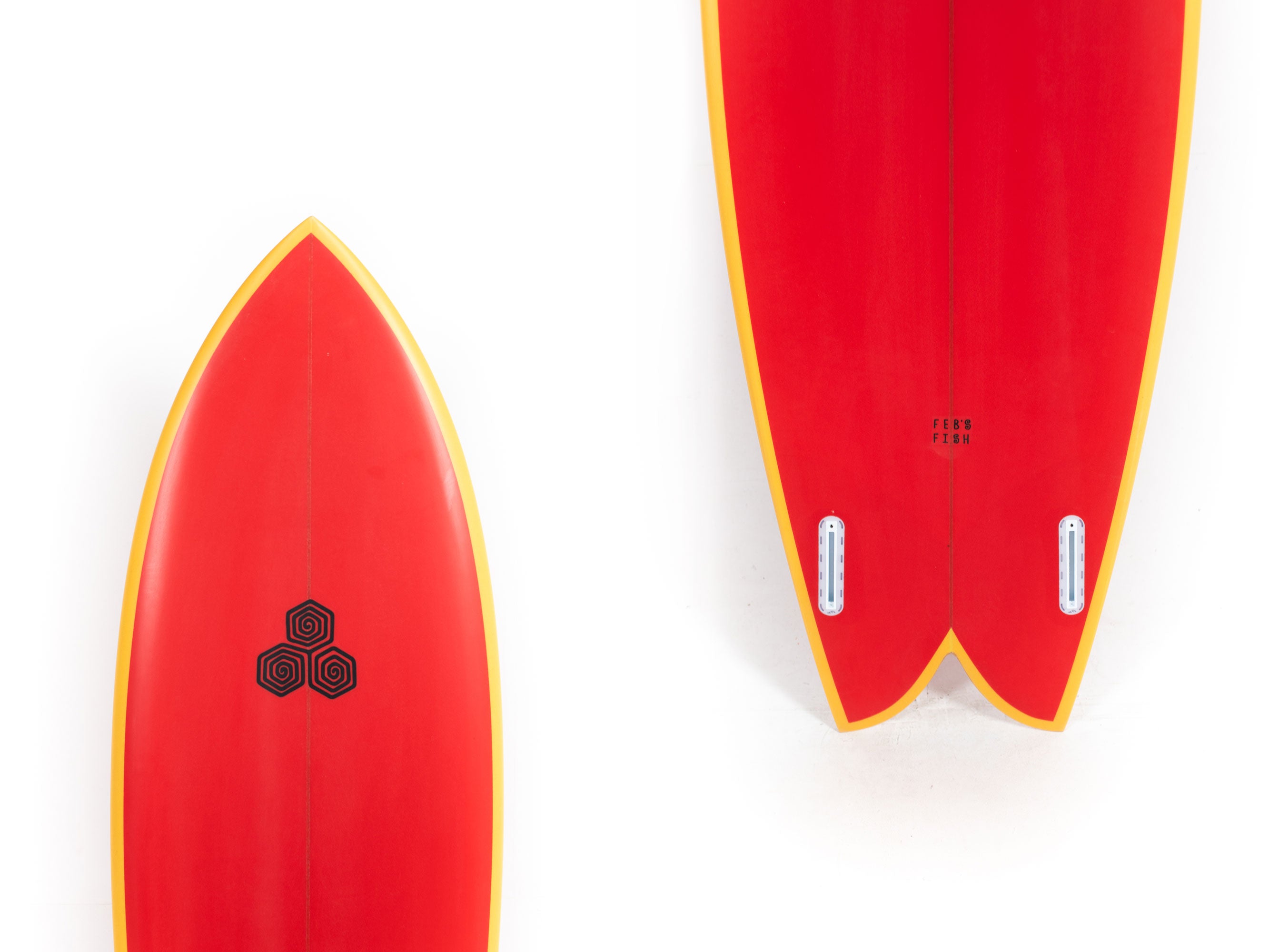 The Feb's Fish is the latest result of Michael February's never-ending curiosity for exploring new lines through designs shaped by Britt Merrick. Sometimes Mikey's requests are for original concepts, while other are his new take on a classic design. The latter was the case when he asked Britt for a traditional fish outline with a contemporary engine (modern bottom contours, rocker, etc.) and finely foiled rails so it could be ridden at the highest performance levels possible.