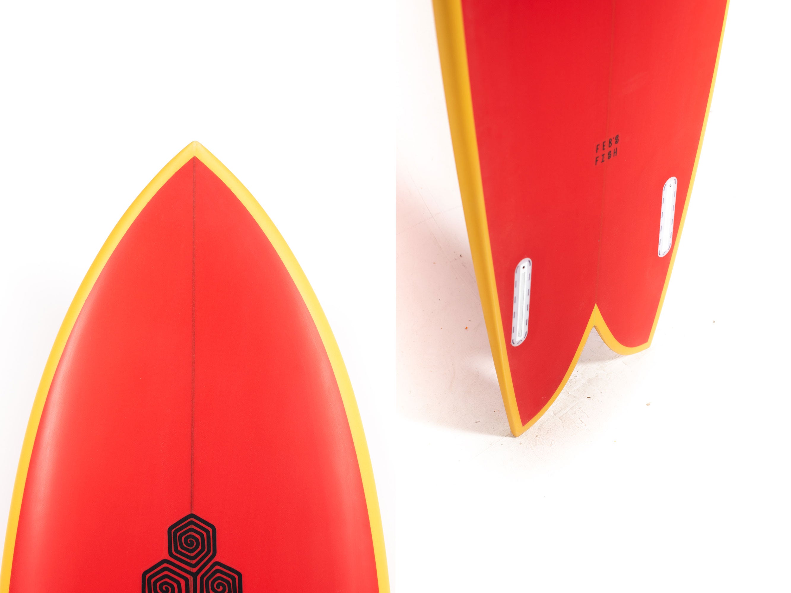 The Feb's Fish is the latest result of Michael February's never-ending curiosity for exploring new lines through designs shaped by Britt Merrick. Sometimes Mikey's requests are for original concepts, while other are his new take on a classic design. The latter was the case when he asked Britt for a traditional fish outline with a contemporary engine (modern bottom contours, rocker, etc.) and finely foiled rails so it could be ridden at the highest performance levels possible.