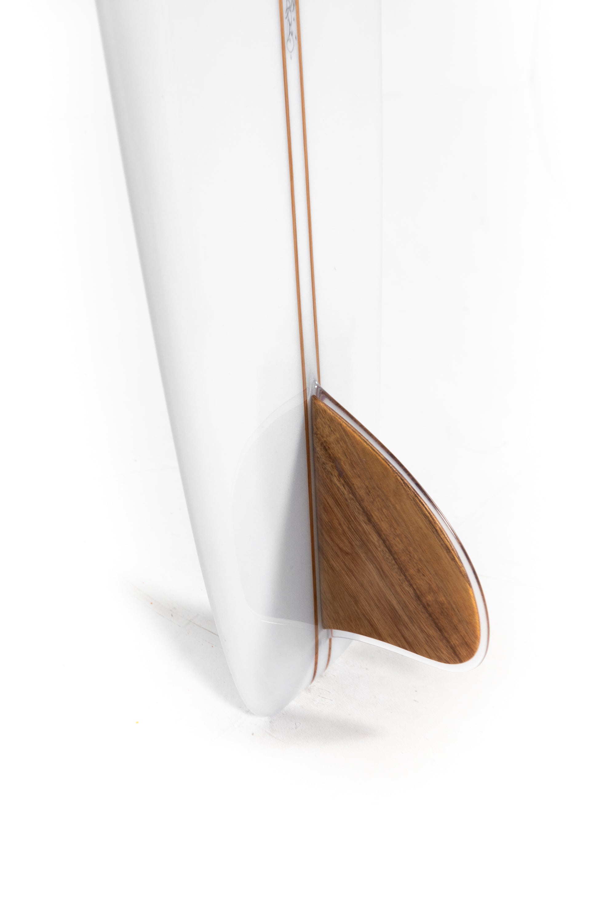 About this clear 9’9” Malibu Chip with double stringer, polish and glass on fin.