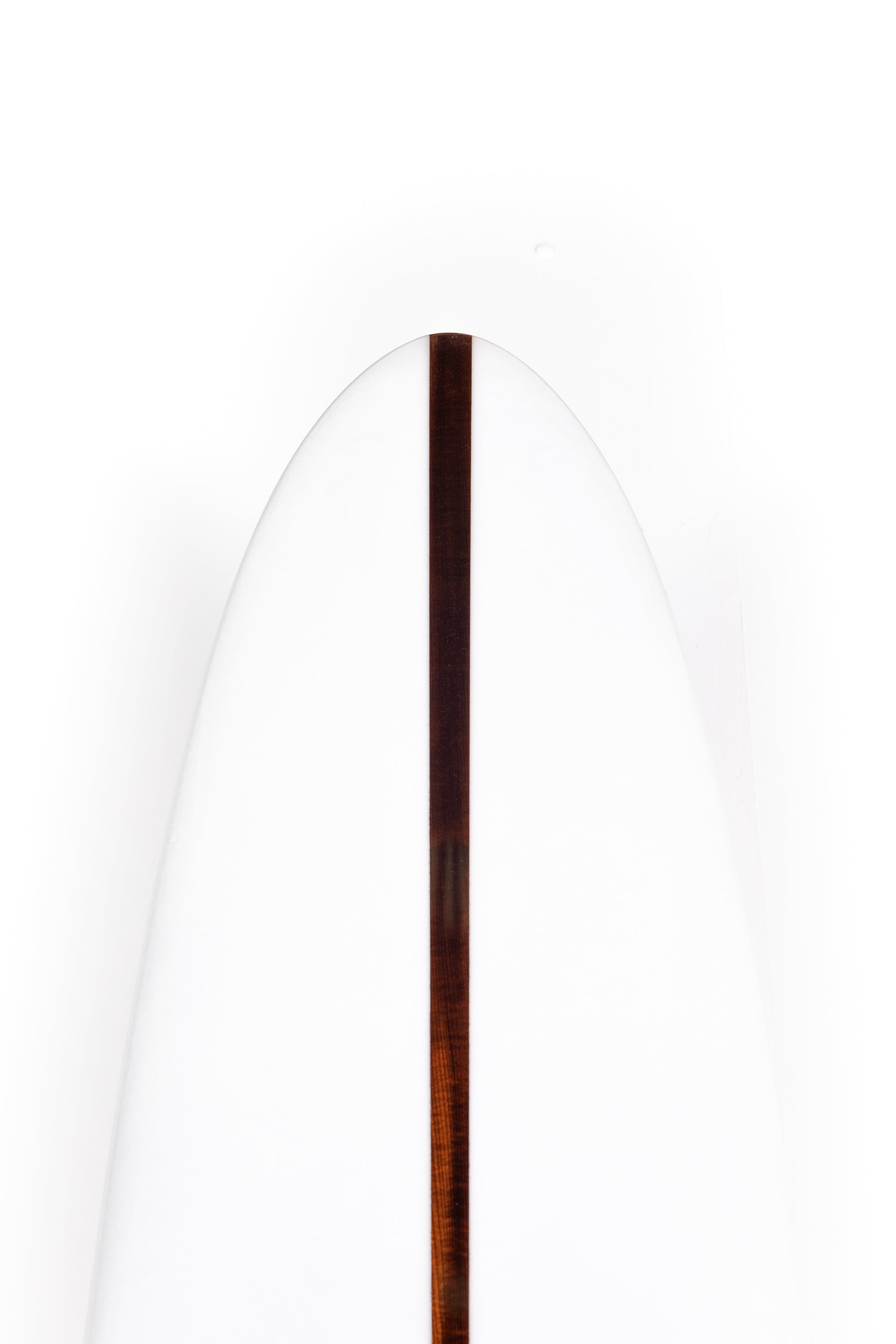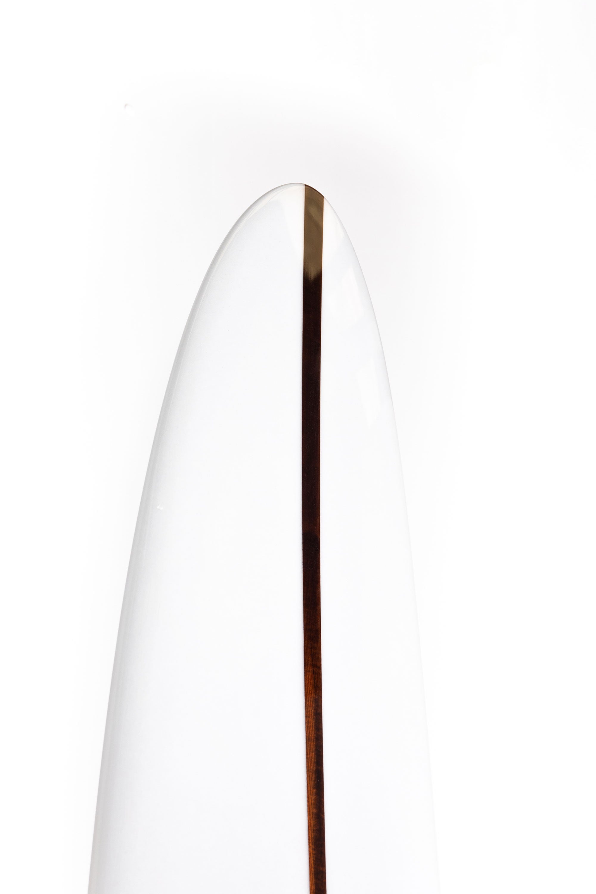 “I have strectchened the outline, and made it narrower, 21 3/4 wide, the wide point is located on the middle of the surfboard, it's also the point where the belly vee on the bottom softly stop and change to a flat bottom shape, the belly vee is then pretty deep on the front part of the surfboard. With 3 3/4 thick the low rails are soft and thick, but softly tappered to get a pinchee entry. The rocker is a bit more pronounced on the nose and the tail get a little kick, but the middle part of the surfboard's rocker get flat and moderated for a maximum glide. the Wedge stringer is supposed to give more weight on the nose and help to "fall" in the wave easily, and to keep the nose stable.”