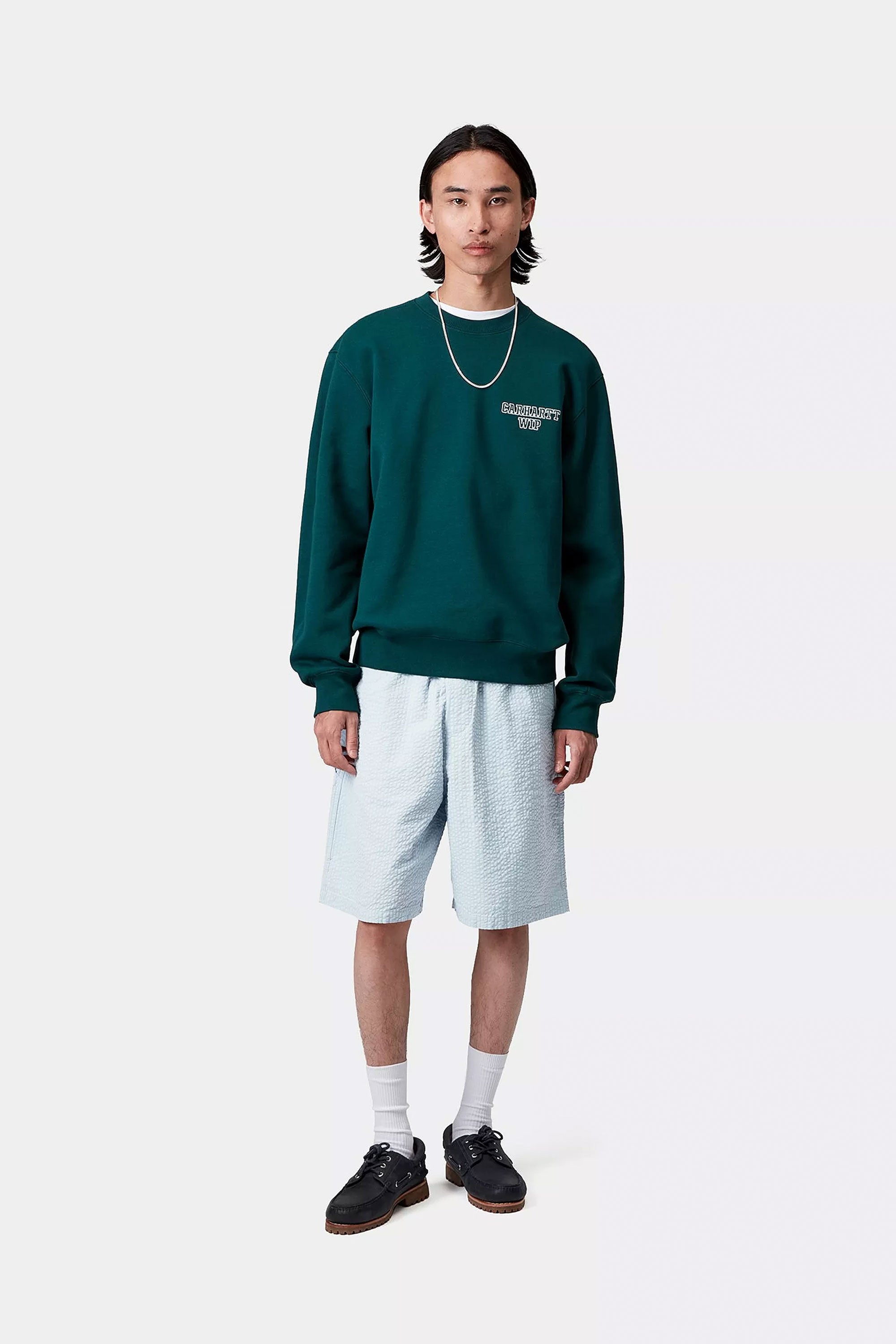 The Toland Short is made in a regular fit from lightweight, textured seersucker cotton featuring subtle allover stripes. The item also has an elasticated waist with an adjustable drawstring. Bartack stitching at vital stress points, tool pockets and a hammer loop nod to the item's utilitarian influences. A woven Square Label appears on the rear pocket.
