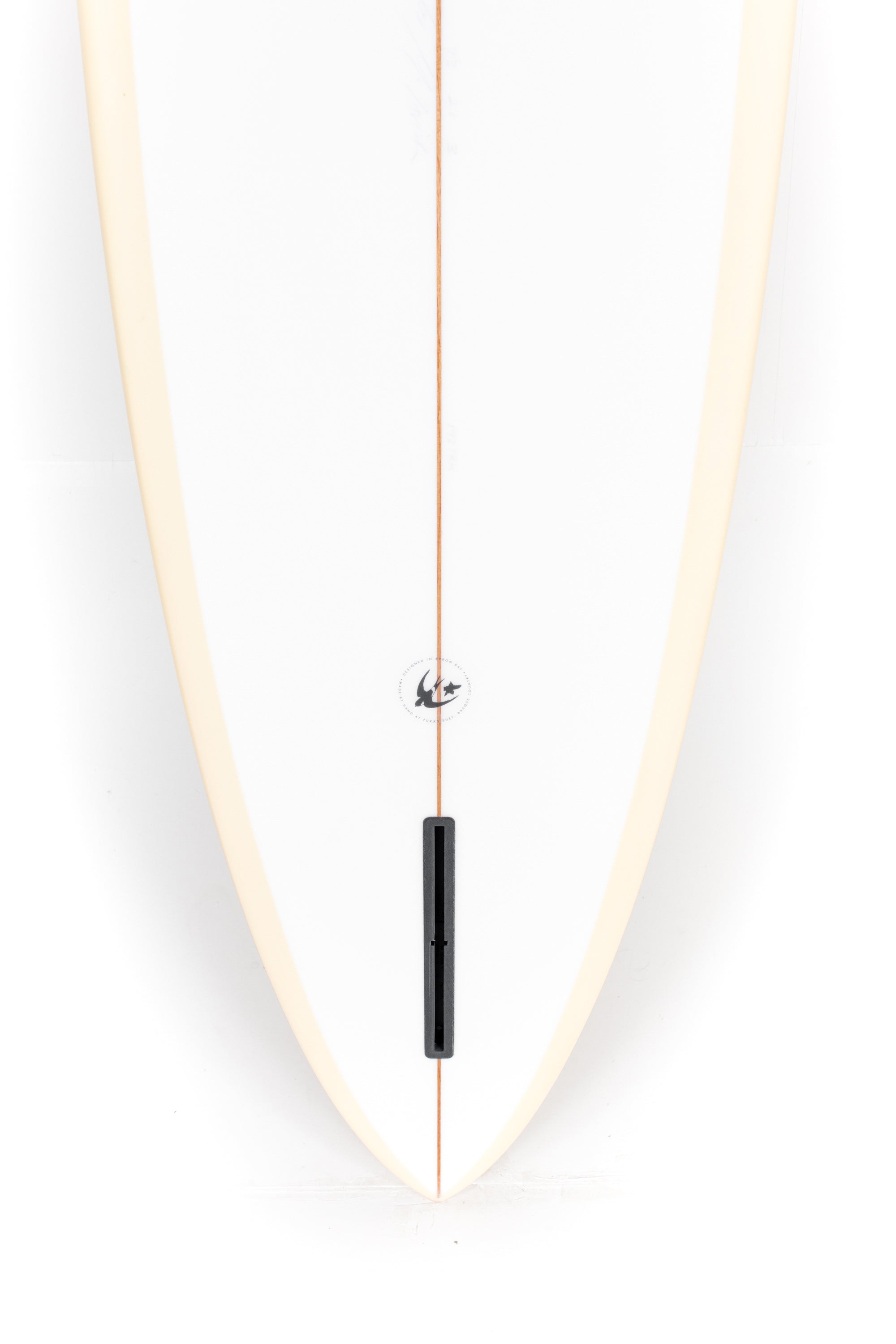 The Tracker has a pretty pointed nose, the widest point in front of halfway, a flattish bottom with slight roll forward and a very slight vee in the tail. It ripped Lennox and Angourie, and every other empty point break on the Aussie coastline!!