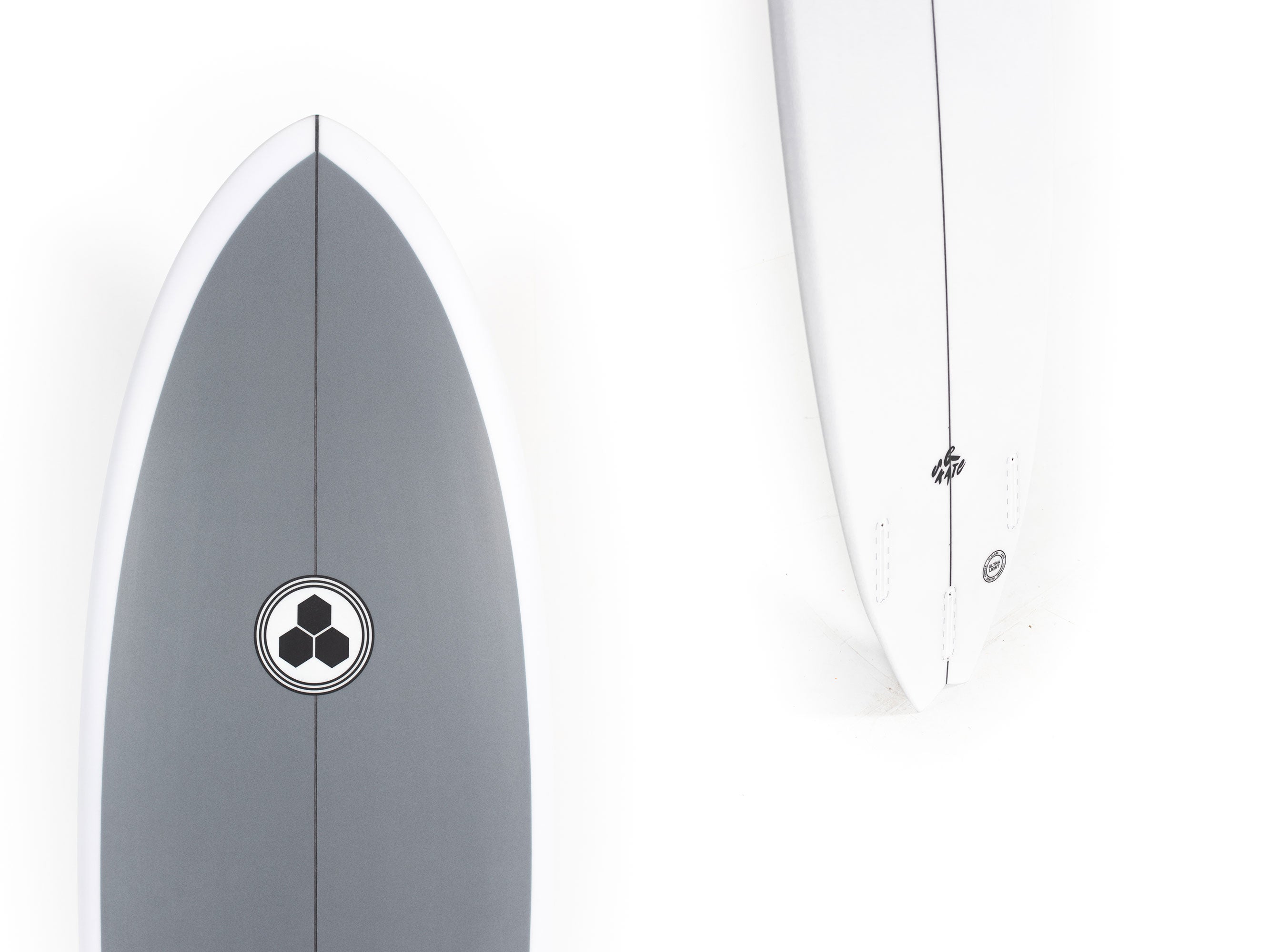 What will be a perfect fit for this CI G-Skate Surfboard would be a fin that allows a freedom and looseness of a twin fin but still brings a refined control of a thruster. This was key to accommodate the broad spectrum of style and approach between Dane, Patrick, and Tanner.