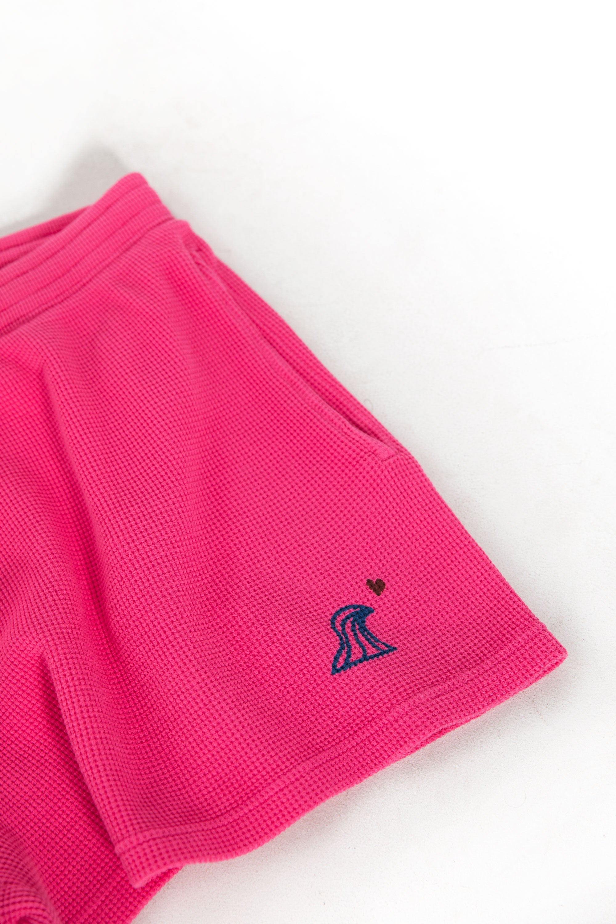 The 3 Olas Short in fuchsia is a lightweight, sporty essential featuring the Happylifeshops wave-heart logo. Designed for movement and comfort, ideal for beach days or active lounging.