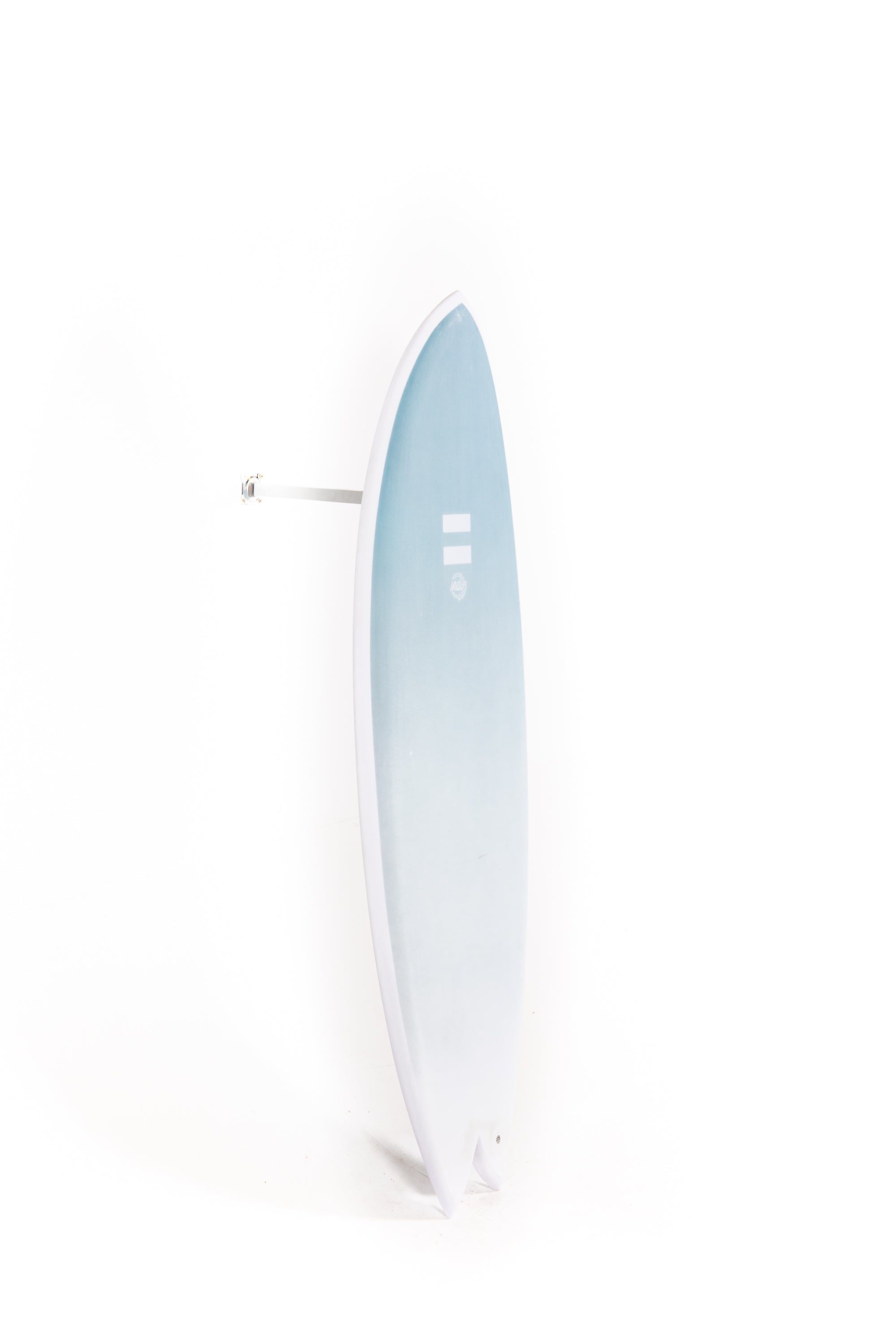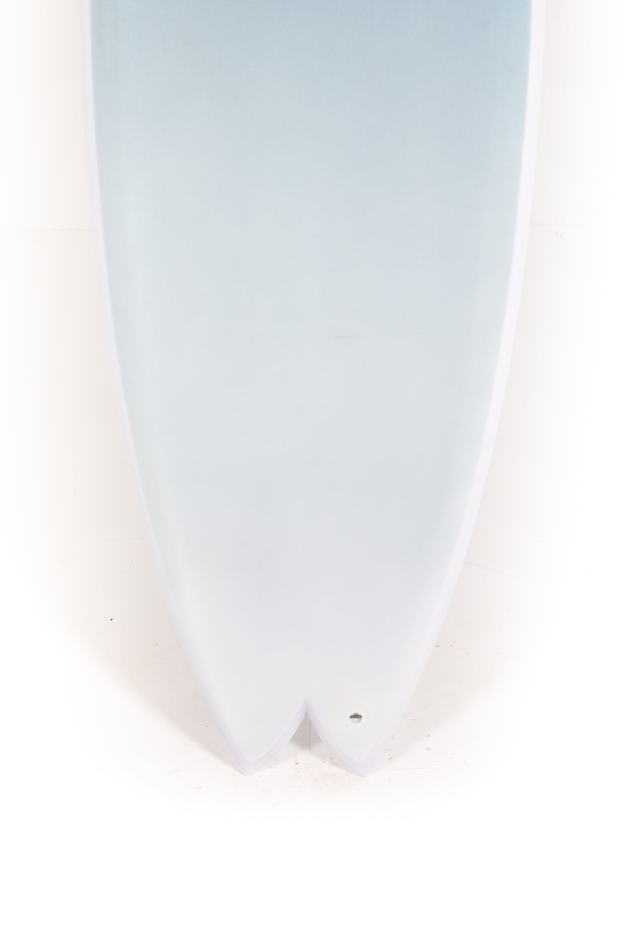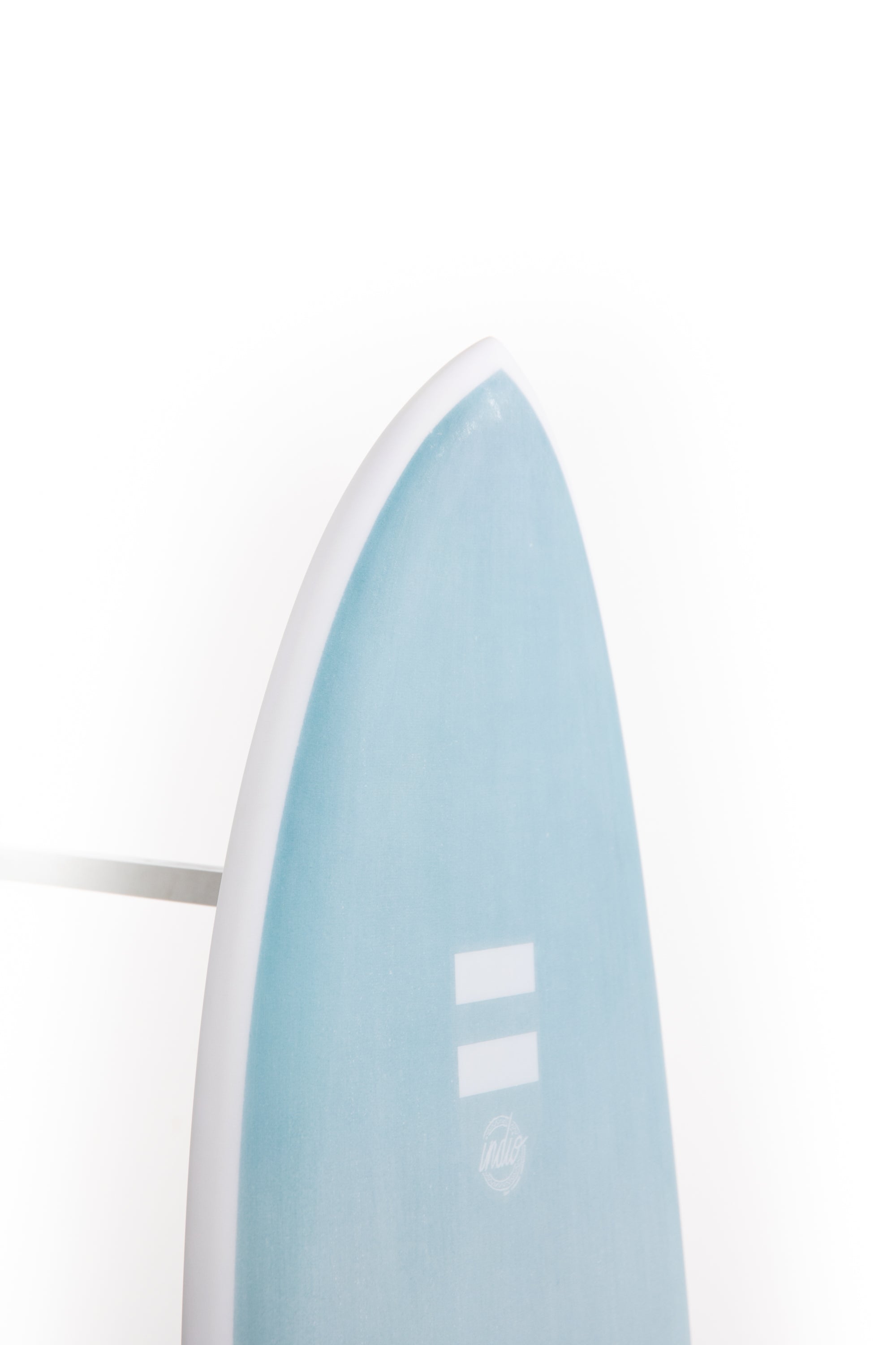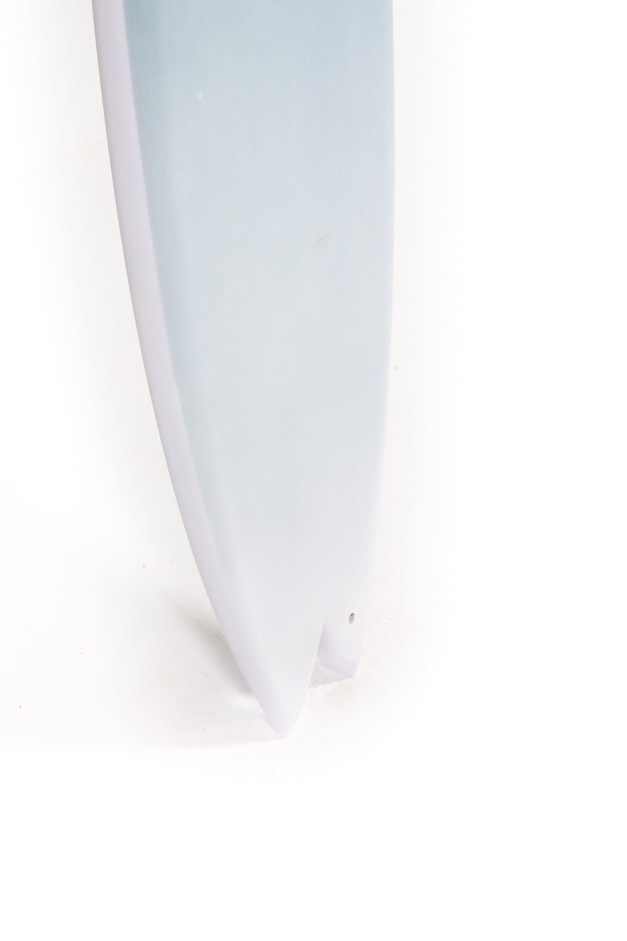 The wide nose outline is made to maximize paddle power. If you take a look at the tail, you'll notice it is pretty narrow compared to the rest of the board. This provides the board with great manouverability and reaction for performance. Also, flat entry rocker blends into an elongated V under the front foot all the way through the fins where water exits.