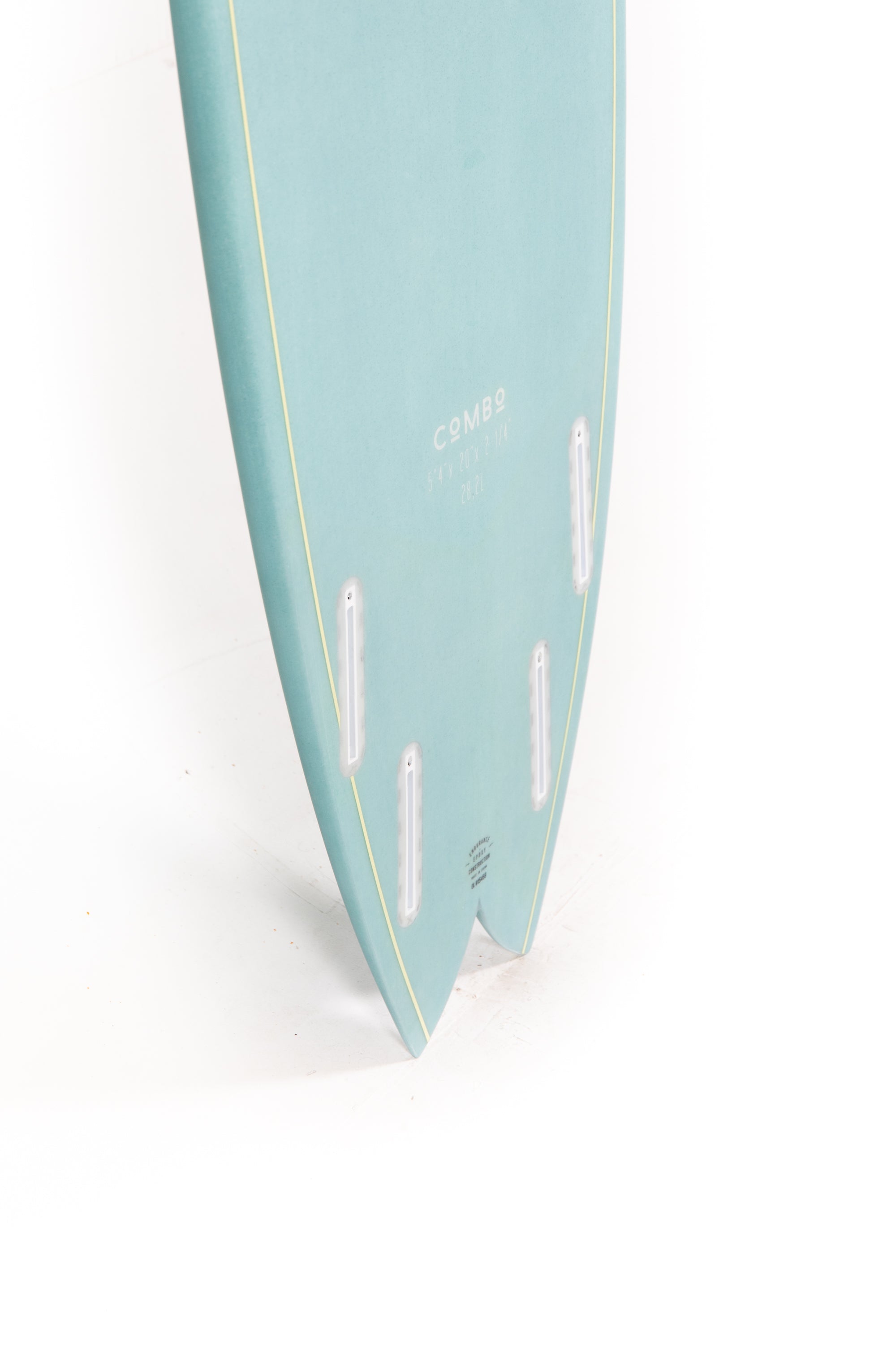 The V in the back third of the board has slight concave. This gives you great rail to rail transitions. Fast, modern and alive would be great words to describe the board. You can use it as a quad for speed or twin for fun. No doubt this model is the perfect COMBO.
