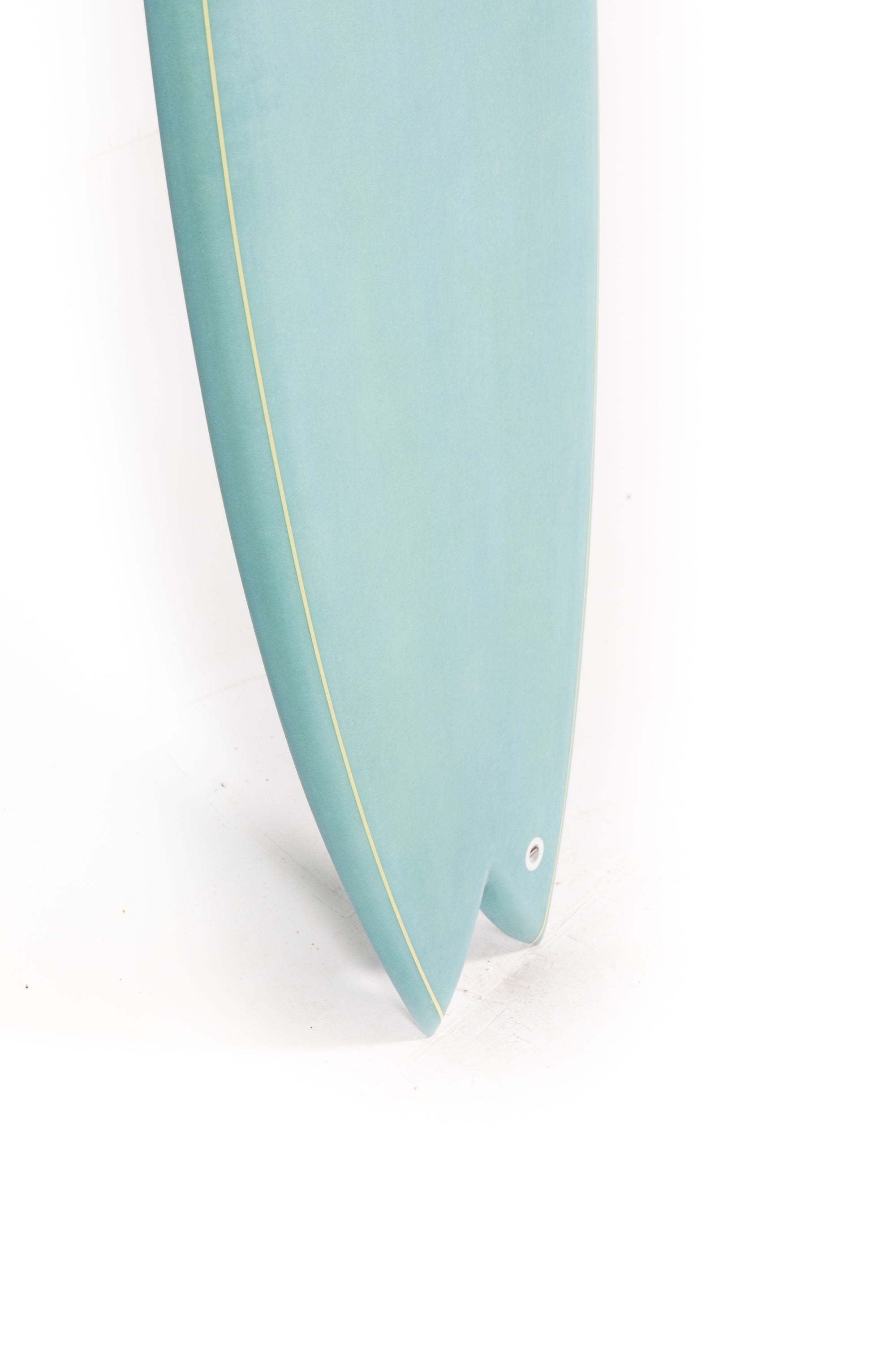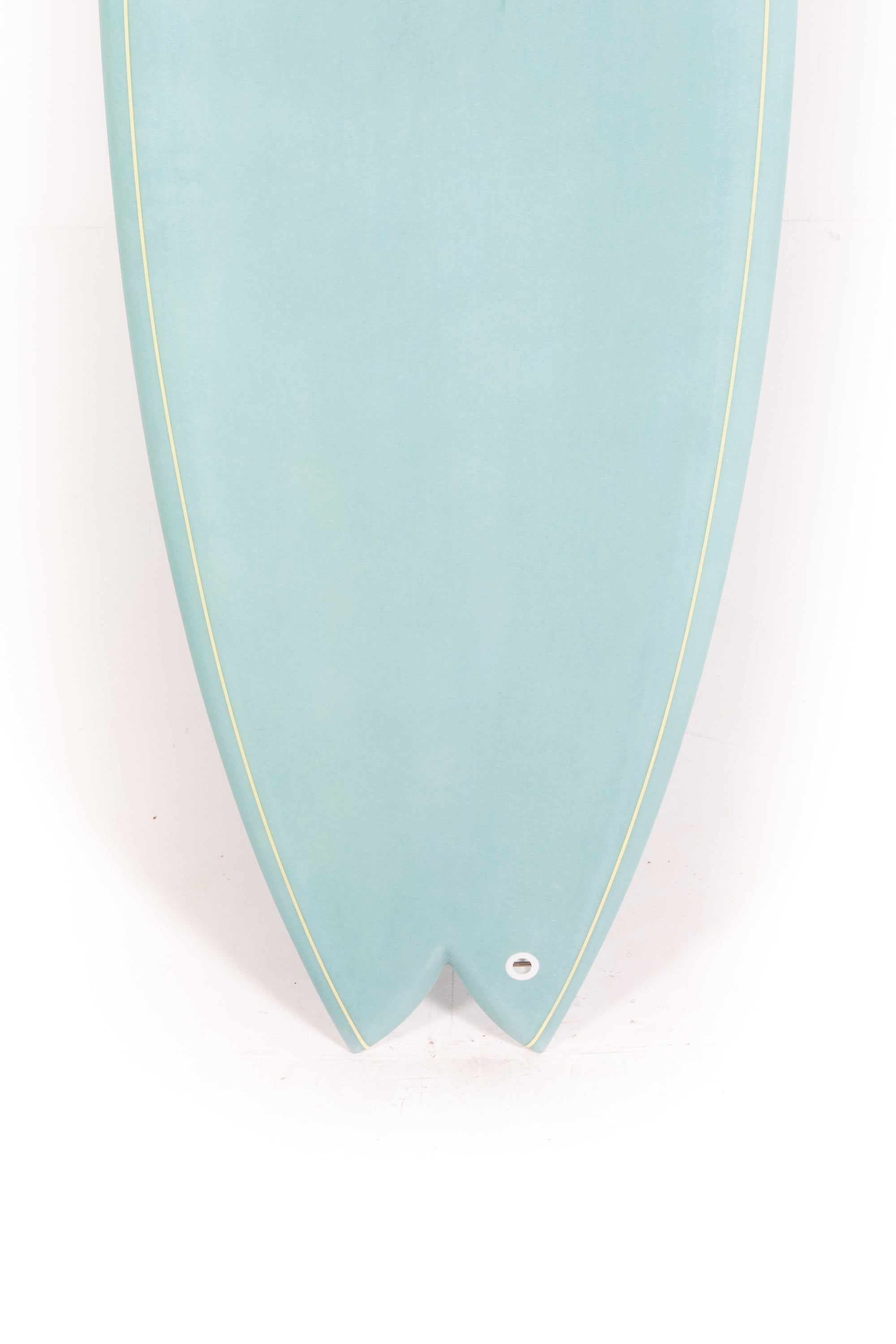 The wide nose outline is made to maximize paddle power. If you take a look at the tail, you'll notice it is pretty narrow compared to the rest of the board. This provides the board with great manouverability and reaction for performance. Also, flat entry rocker blends into an elongated V under the front foot all the way through the fins where water exits.