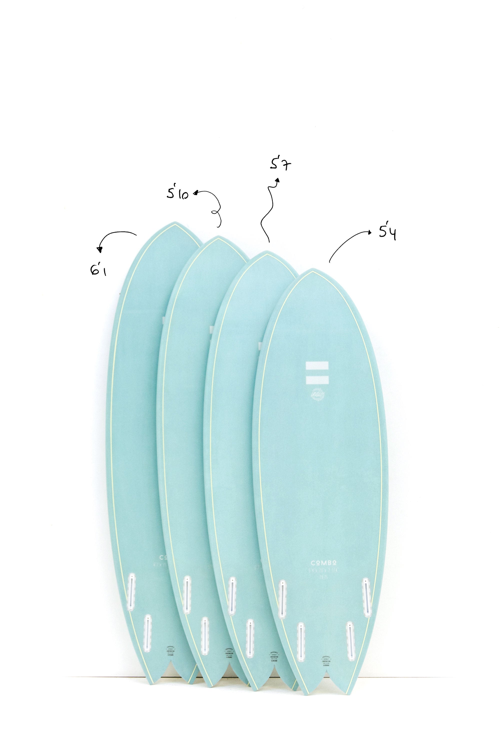 The Indio COMBO comes in 4 different sizes. Ranging from 5'4" all the way up to 6'1" (full dimensions listed further on in this profile), this quad is built for a broad audience. If you have doubts while choosing the correct size for your needs, contact our team of surfboard specialists.