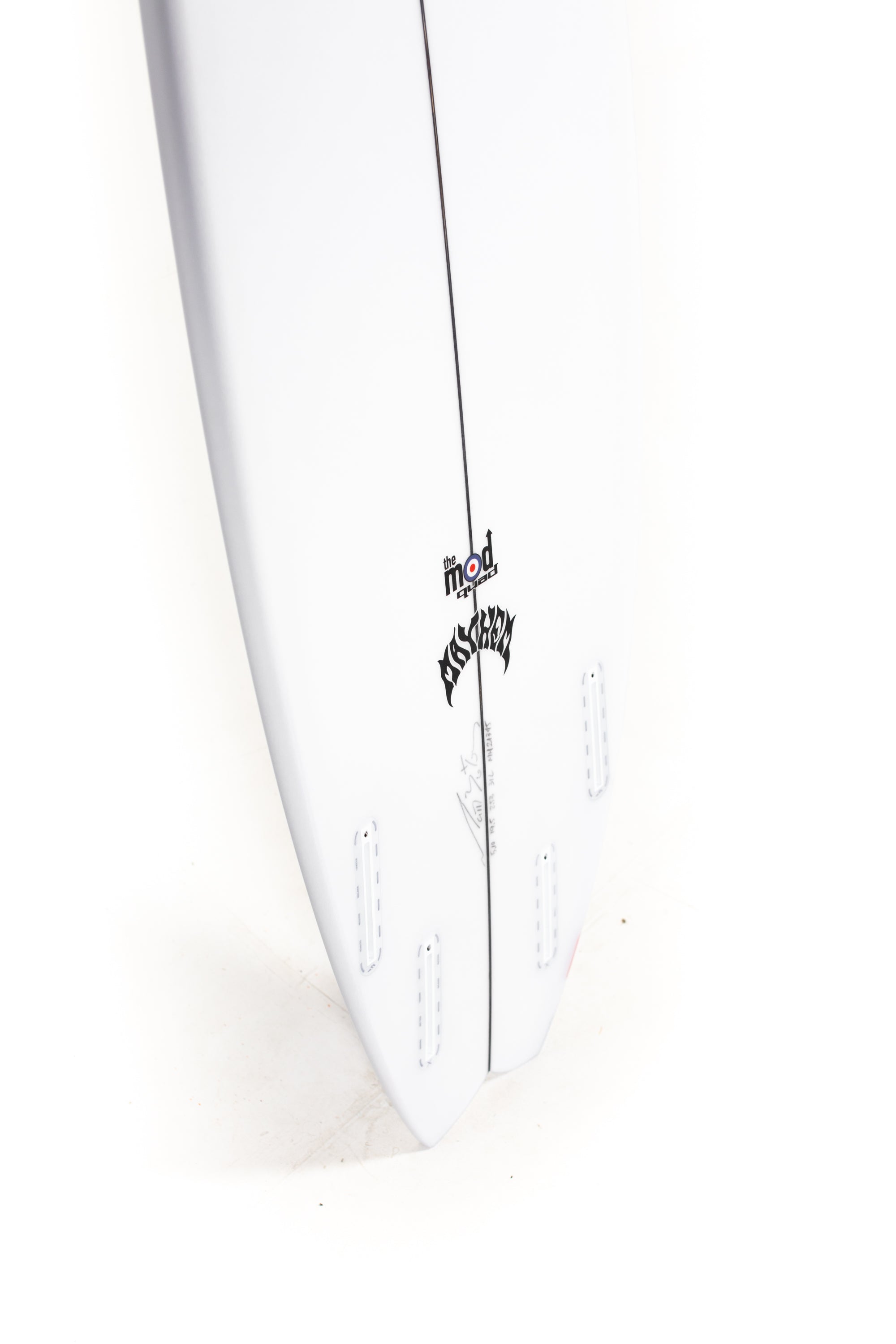 The Mod Quad loves a modern performance quad template, with some rake and is designed to be ridden a 2”-3” shorter and a fair bit wider, than a pro-style performance Thruster.