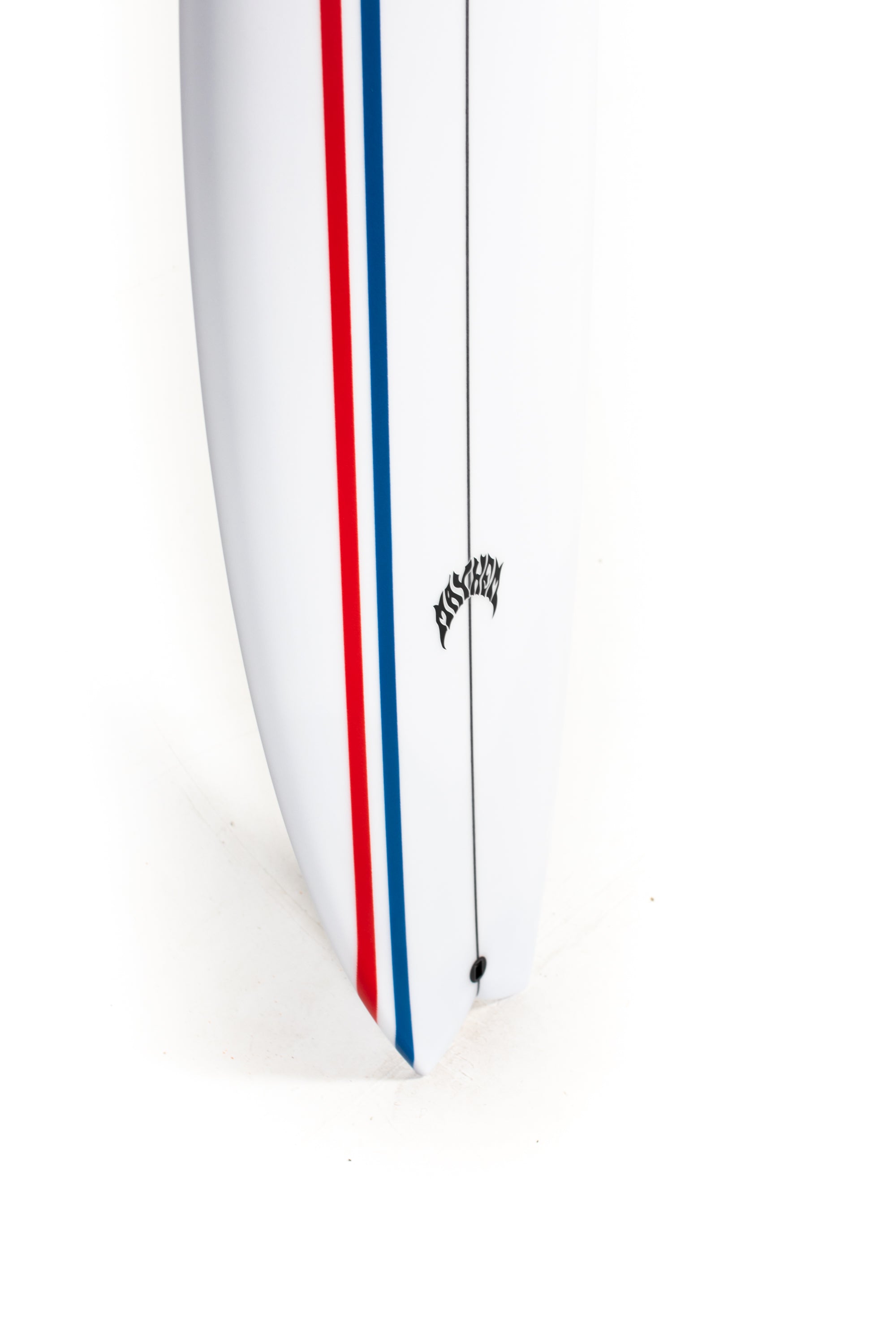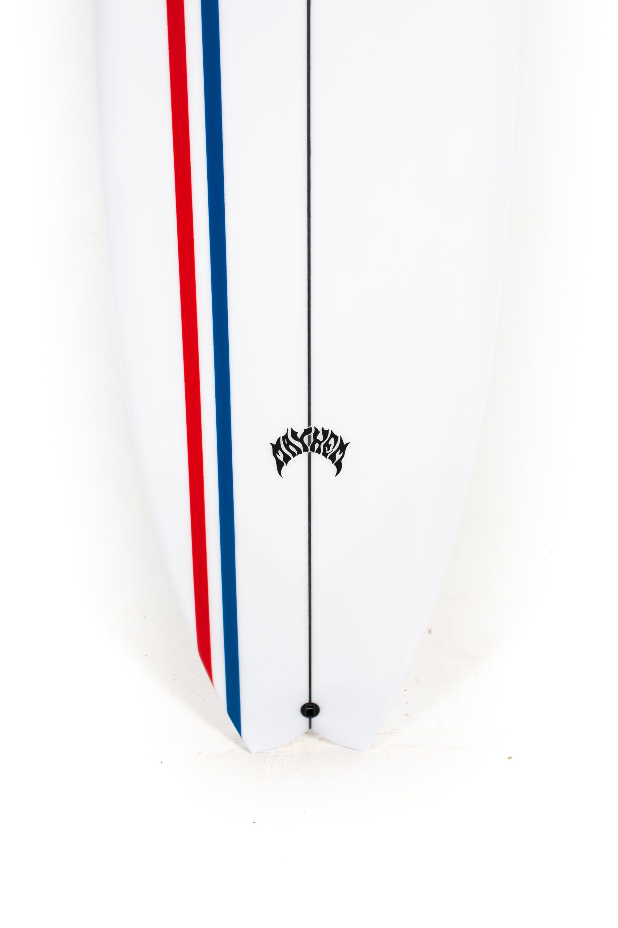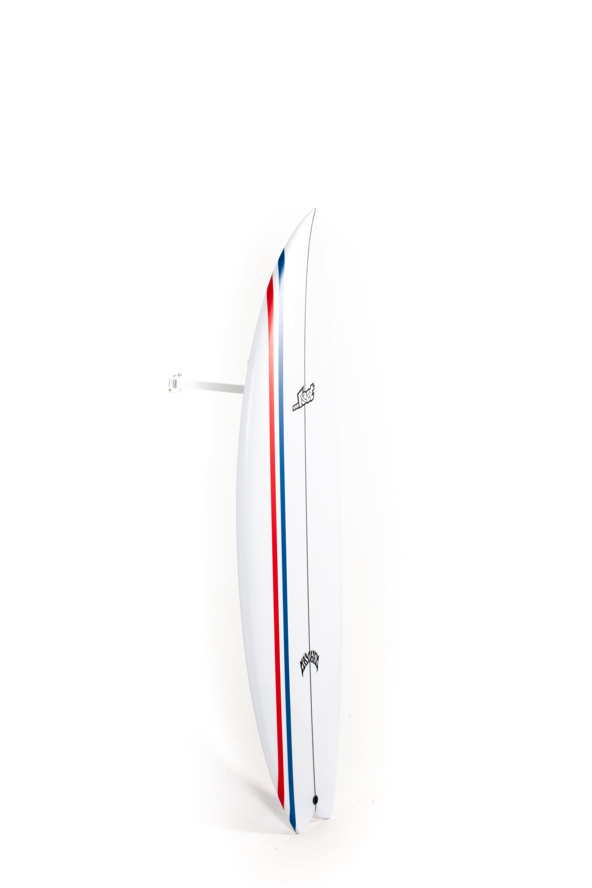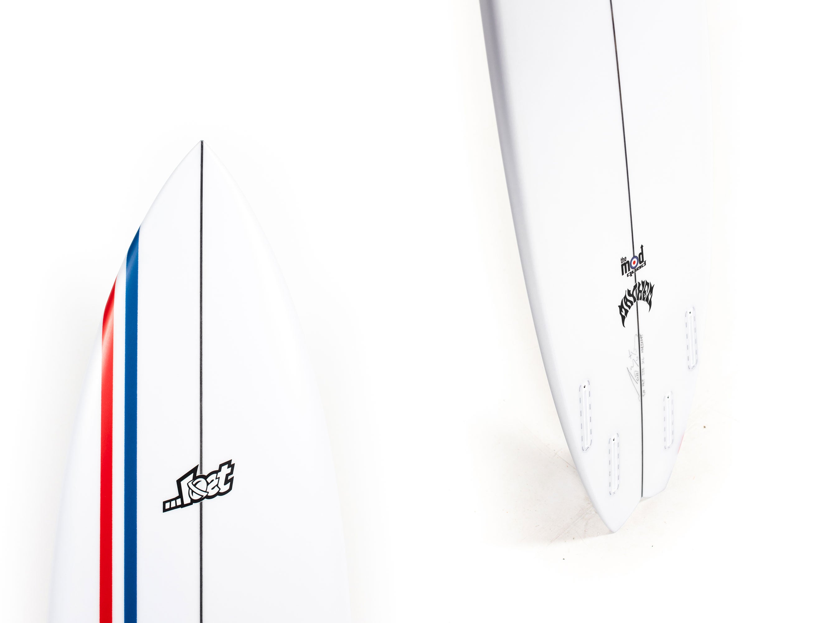 Lost's been building unique little hybrid quads for Shane Beschen and Pops Ho, over in Hawaii, for years now. They love ‘em in typical punchy hot dog days, on the NorthShore, but we never really had many requests or demand to elaborate on them. Starting with those boards, but with smaller, softer, California and East Coast surf in mind, Matt went to work. The Mod Quad has a low overall curve, with a fast entry and a drivey tail rocker. It features an almost exaggerated rail line rocker, that creates a deep single concave, between the feet and hyper-extends through the tail, ending in a noticeable Vee, behind the rear fin. Low rocker for speed, concave for lift, curvey rail line for turning and the Vee out the back, which acts like a rear fin, guiding and holding in through turns. A generally wide and skatey performance outline, with full, forgiving nose and a wide point set back, creates hip in the tail that swoops into a moderate swallow. The swallow reduces a bit of surface area, lends some grip and pivot, while still retaining width, for speed in smaller everyday surf.