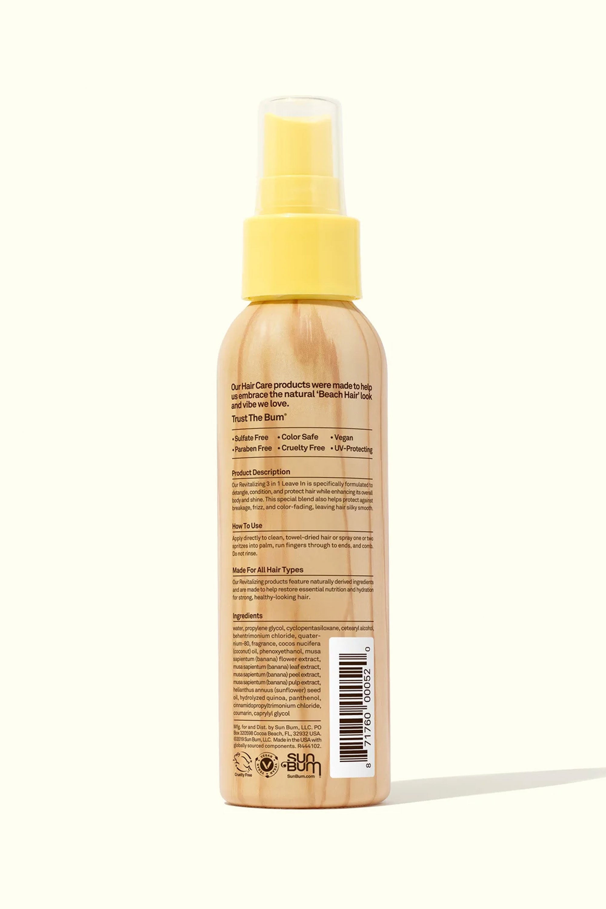 Keep your hair smooth and strong with Sun Bum's 3-in-1 Leave In Conditioner. This lightweight spray detangles, conditions, and protects against breakage and UV damage. Perfect for daily use to maintain hydrated, frizz-free, beach-ready locks.