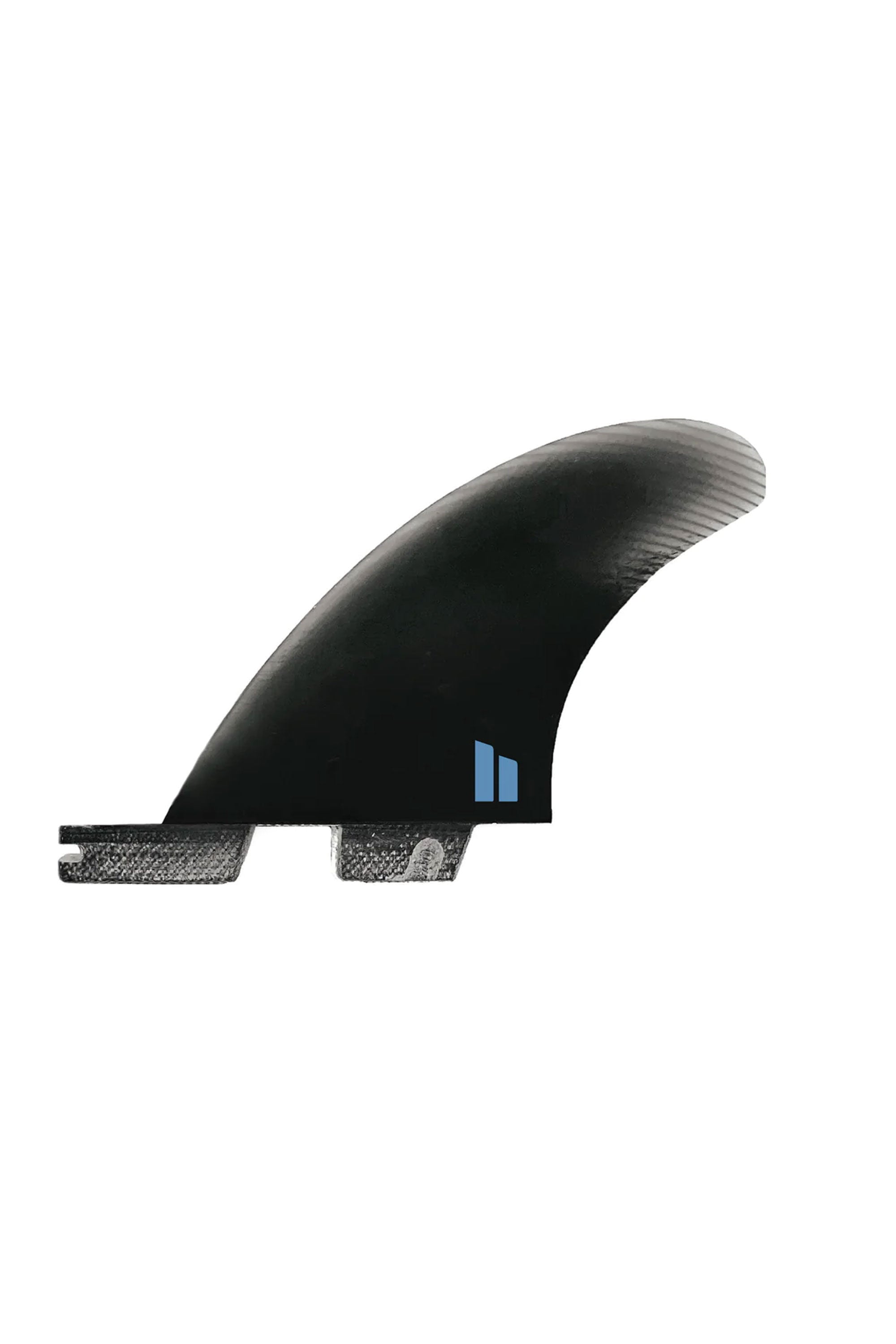It's best to think of the Performer Twin as 2/3 Twin and 1/3 Thruster. The side fins are at the lower end of the S-M size category and have a neutral sweep angle (Performer Family) and a streamlined outline from base to tip. The stabiliser, which has a higher sweep angle (Carver Family), is oversized compared to most stabiliser fins which increases the combined surface area of the set, but more importantly, adds significant control when surfing.