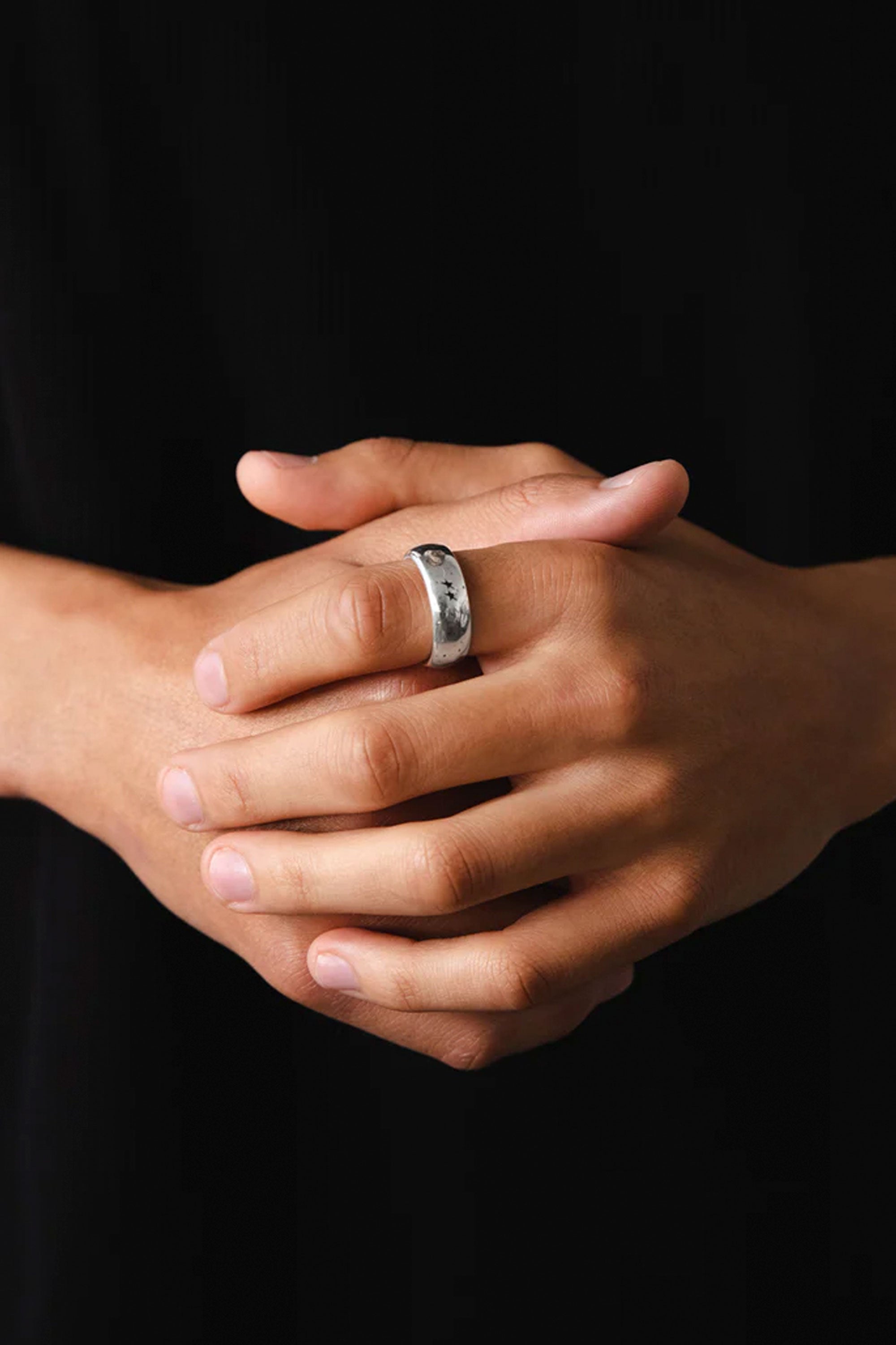 The Signature Ring has a circular brass base with the icon logo stars engraved discretely. High Quality Silver Bath (12 microns)